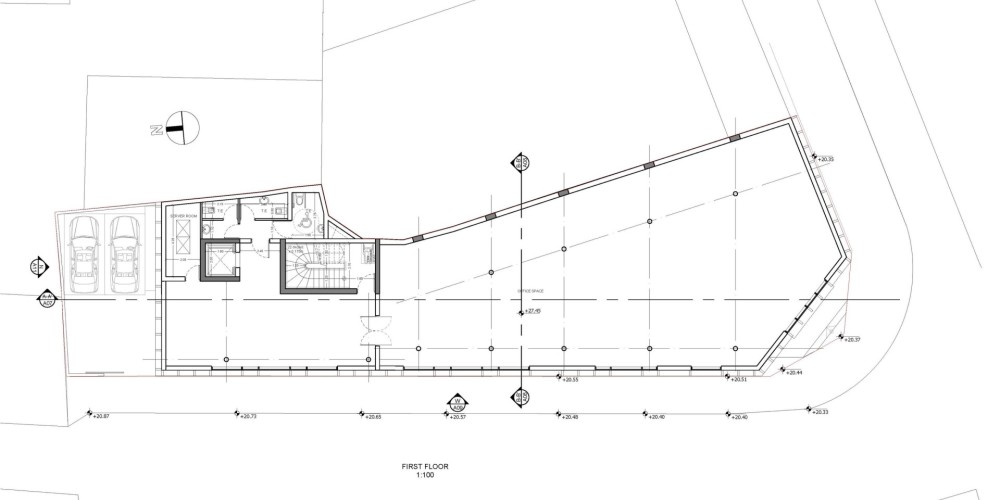 S969 - Modern business building, featuring multiple entrances and a rooftop garden in Limassol