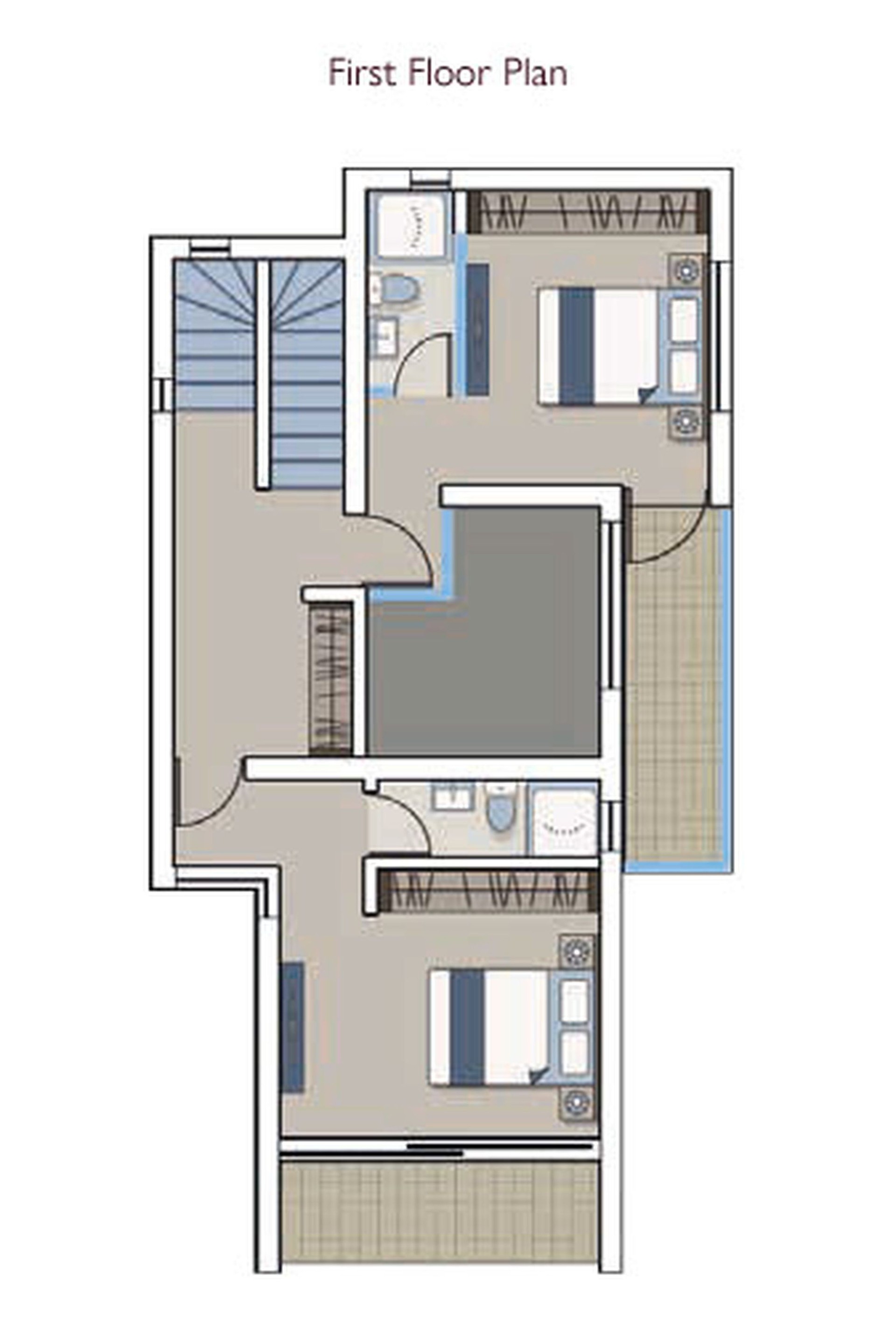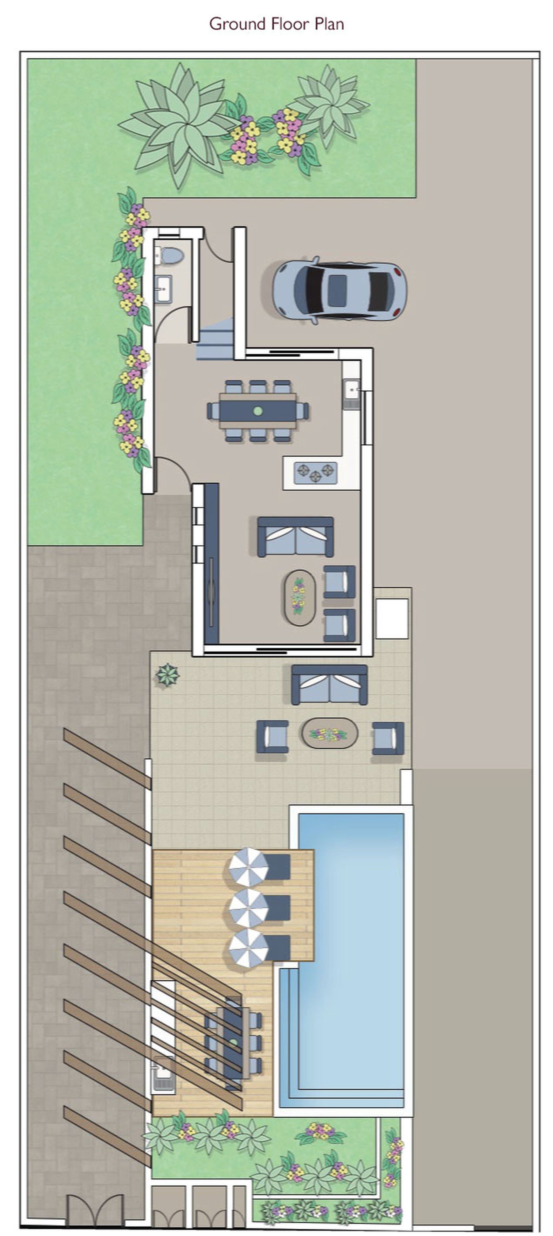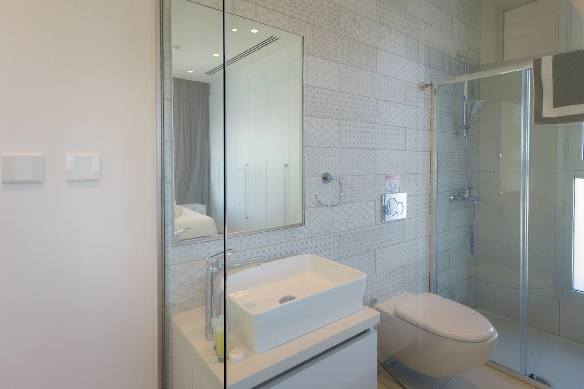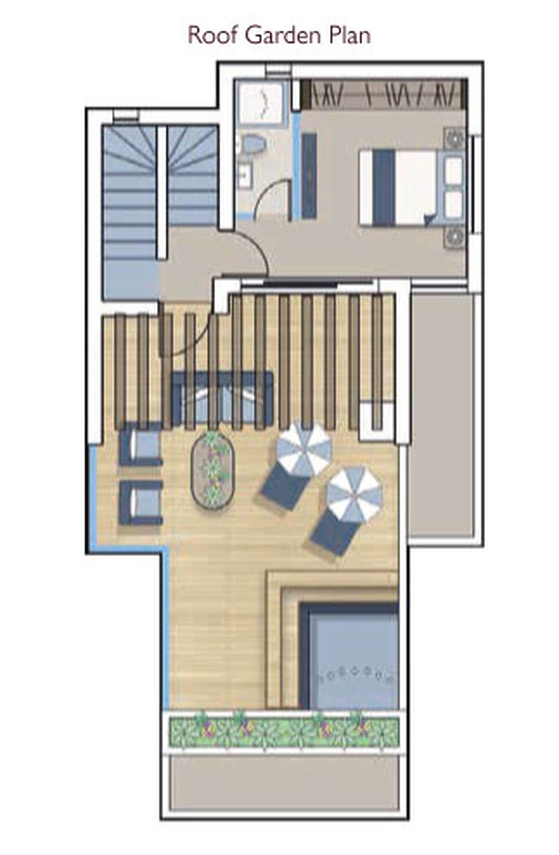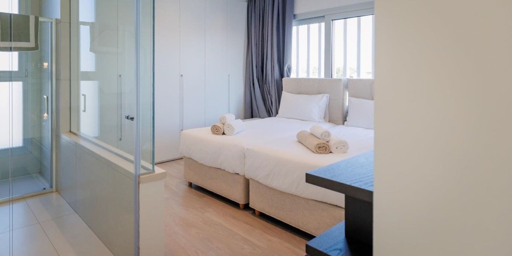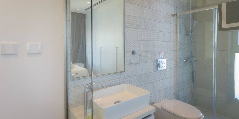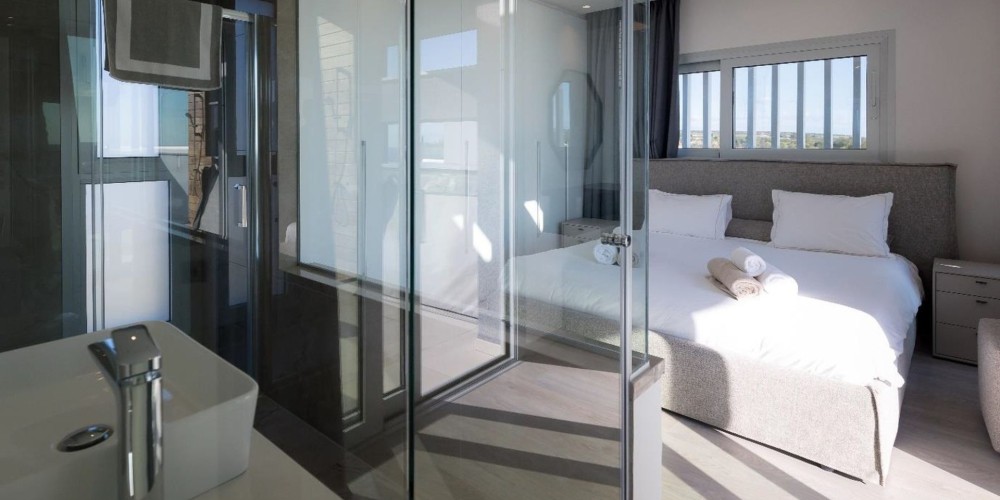 The villa’s exterior features practical and visually pleasing finishing materials. Inside, surfaces, fixtures and fittings have all been meticulously chosen to be both beautiful and long-lasting. The living room, kitchen and patio with the pool are all located on the ground floor. Two of the ensuite bedrooms are placed on the first floor and a third ensuite bedroom is found on the second floor, next to the roof terrace with the jacuzzi.