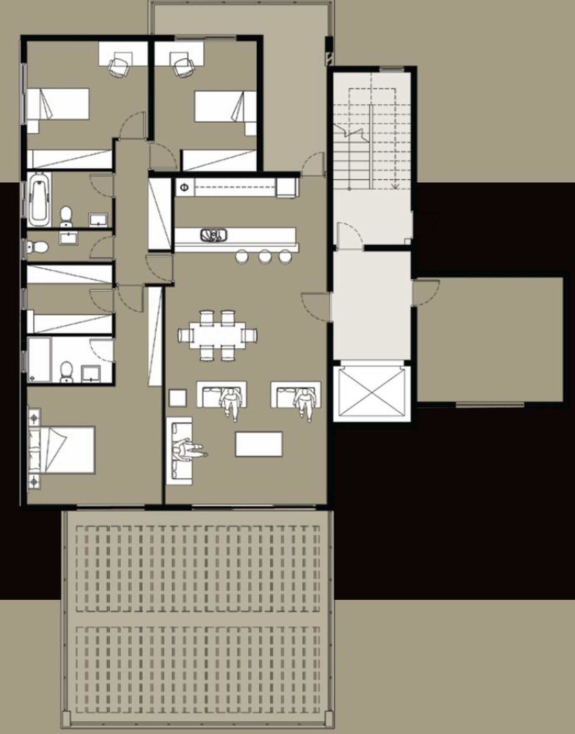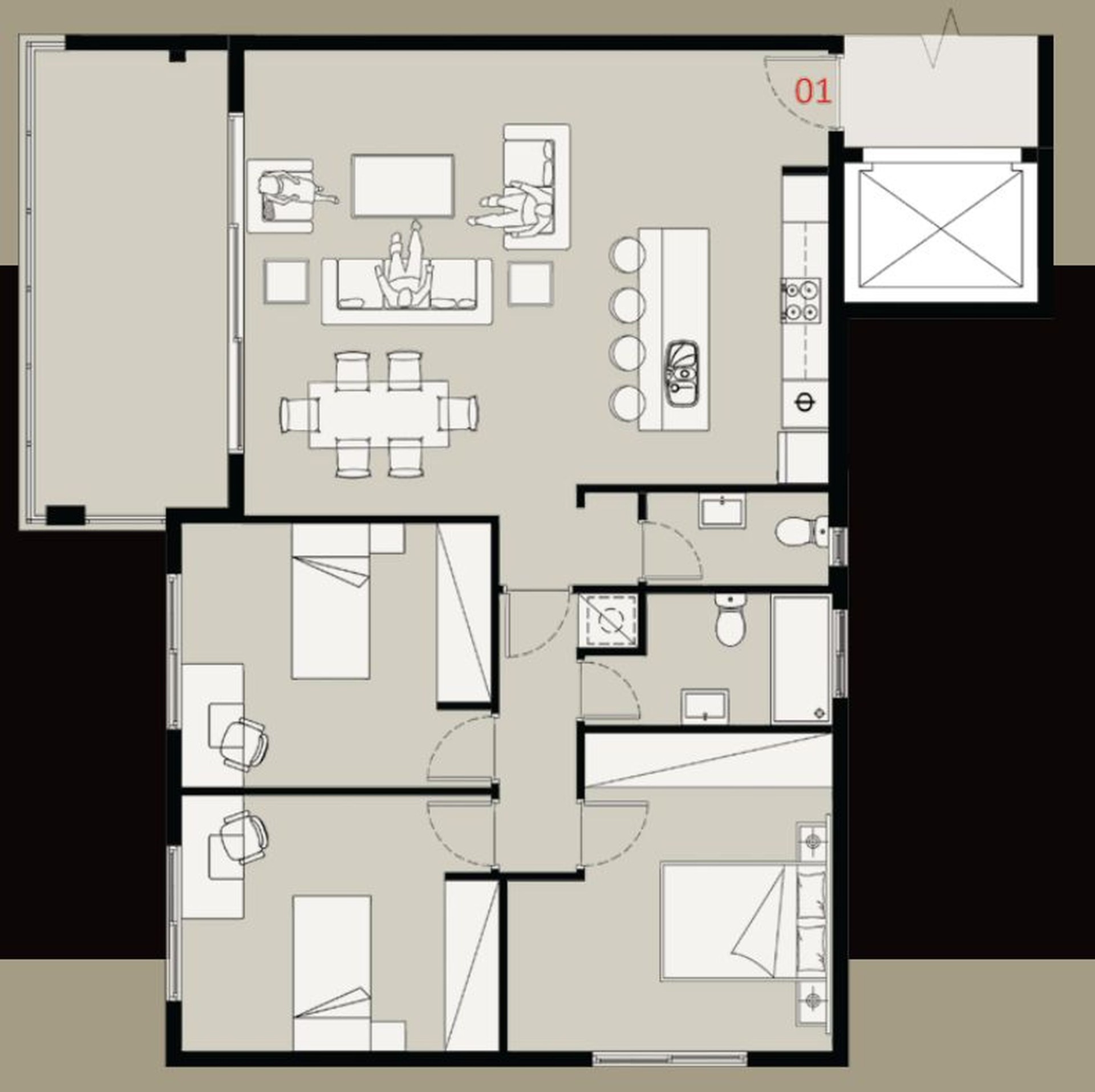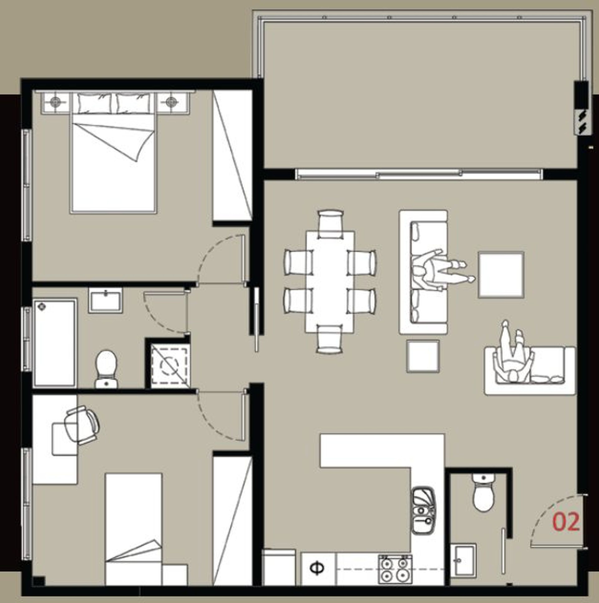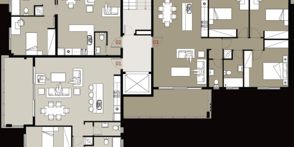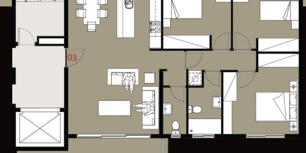 The Penthouse has a unique layout and is situated on the 4th floor as the only apartment. The master bedroom features a walk-in closet and en-suite. The other two bedrooms share a bathroom and there is also a guest toilet. A large adjacent room is exclusively offered for a gym or a recreational area. The kitchen side covered veranda is ideal for fun barbeque experiences.