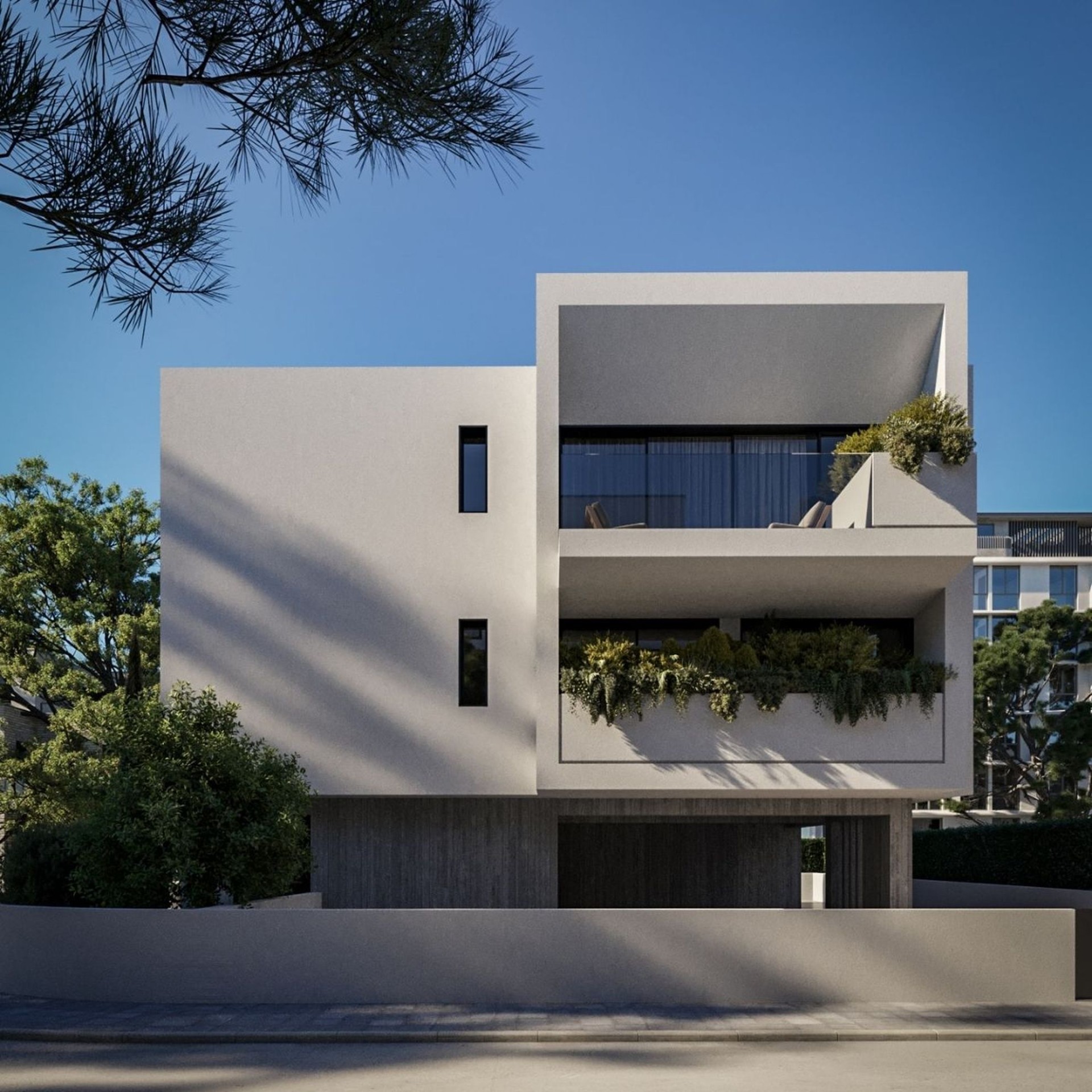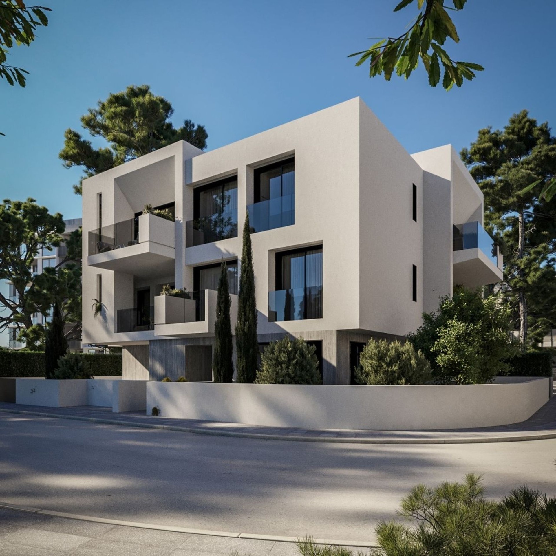 A residential development located in the area of Kato Paphos. The project consists of a ground-floor parking area with an elevator and staircase, leading to two floors of well-planned apartments.