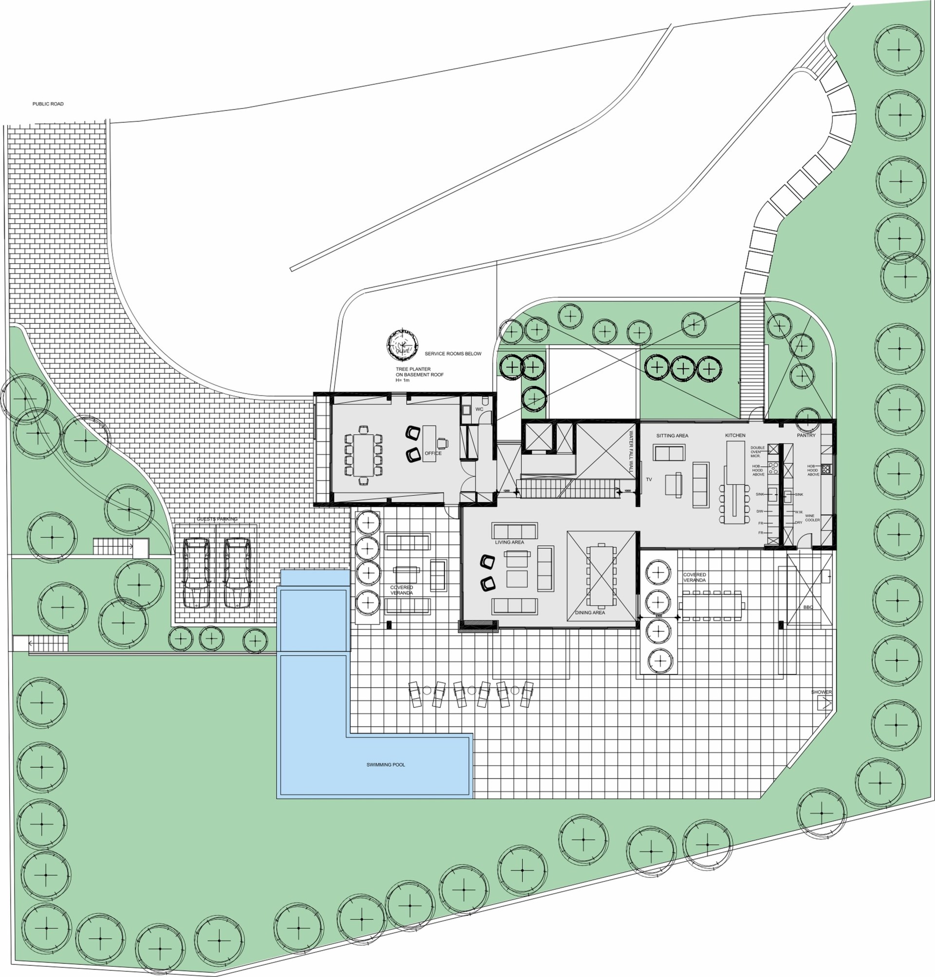 The villa is designed on three levels (basement, ground floor and first floor). The villa enjoys its own private swimming pool surrounded by an outdoor barbecue area, spacious indoor and outdoor areas.
