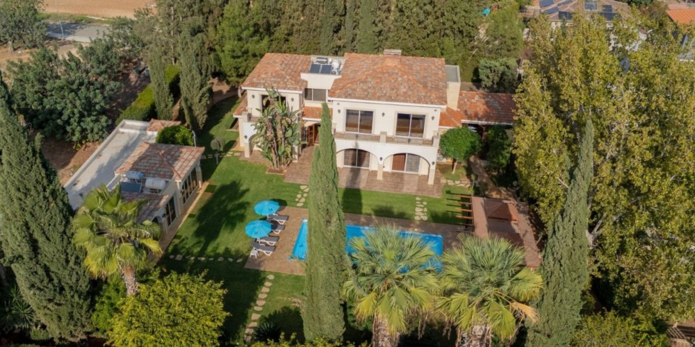 Set in Agios Sylas, on the western part of Limassol, this gated Tuscan-inspired estate offers panoramic views over Akrotiri Bay.