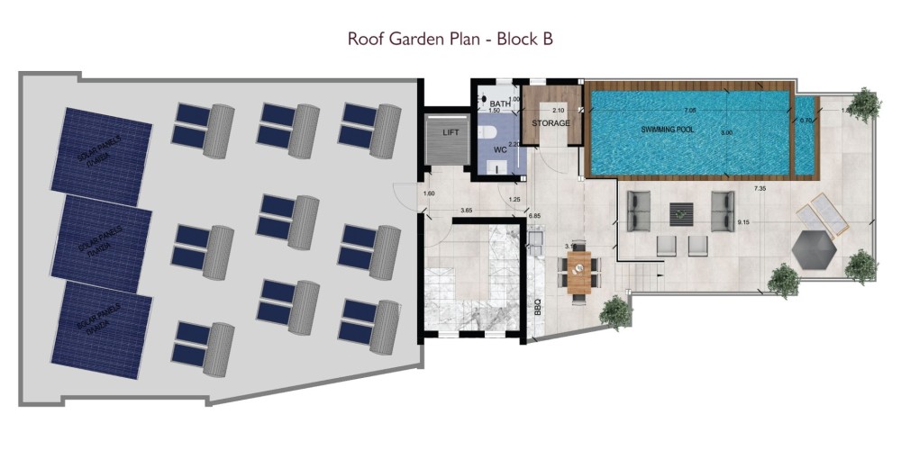 A remarkable feature of the second building is the rooftop communal swimming pool, available to residents of both buildings.