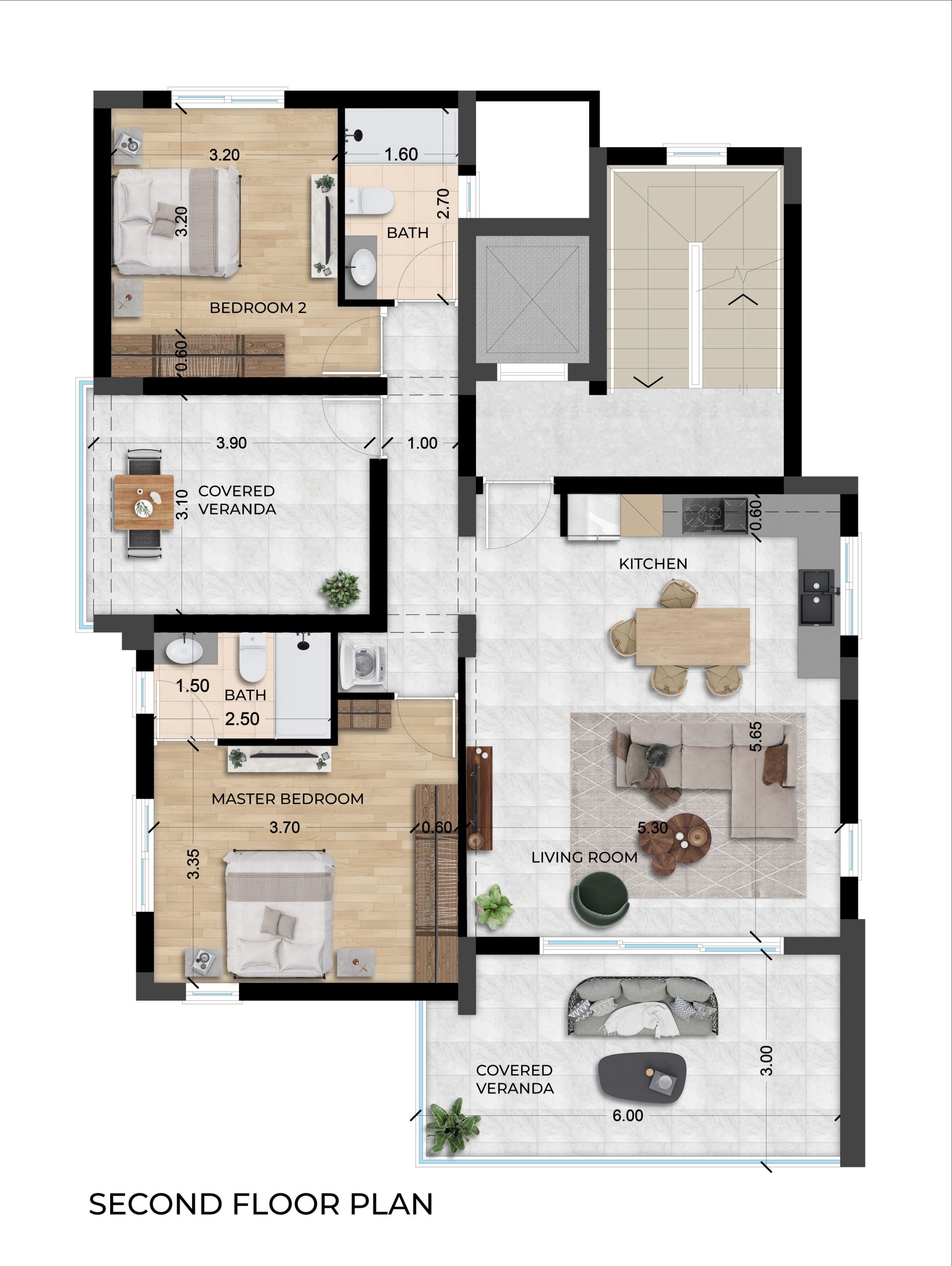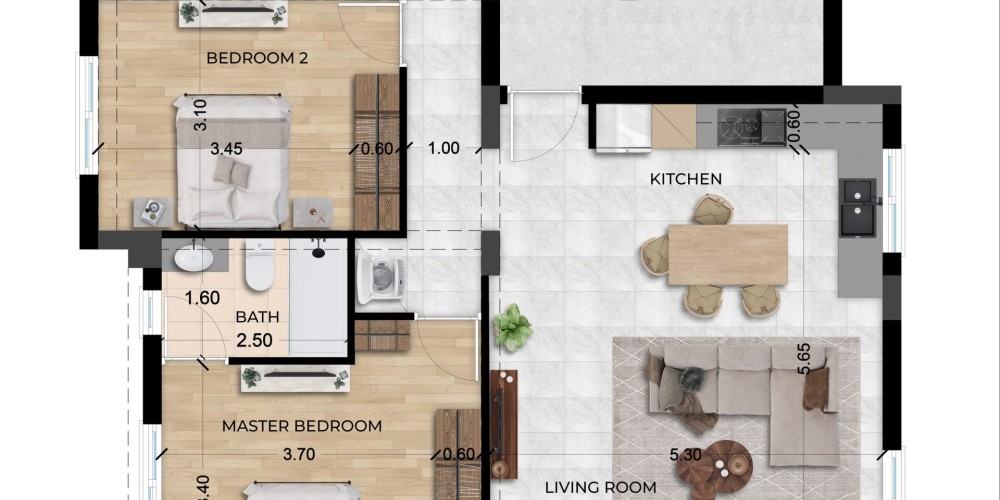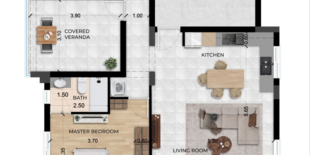 These spacious apartments will have covered balconies and the penthouse will enjoy an uncovered roof terrace.