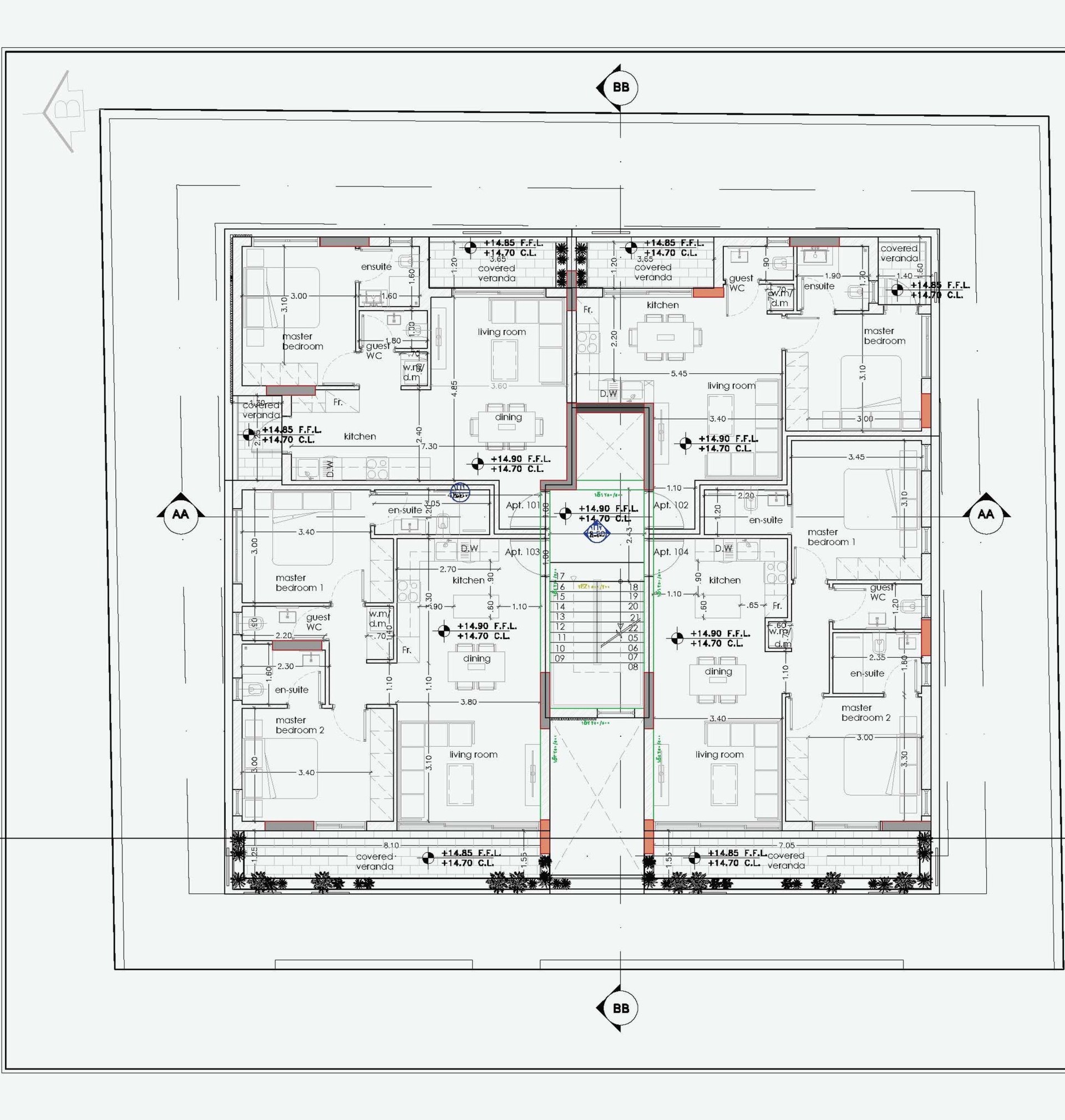 The project includes 8 apartments. It has fully integrated modern features: equipped with an elevator, solar water heaters, photovoltaic panels, spacious balconies, green areas, storage spaces and a private parking space for each apartment.