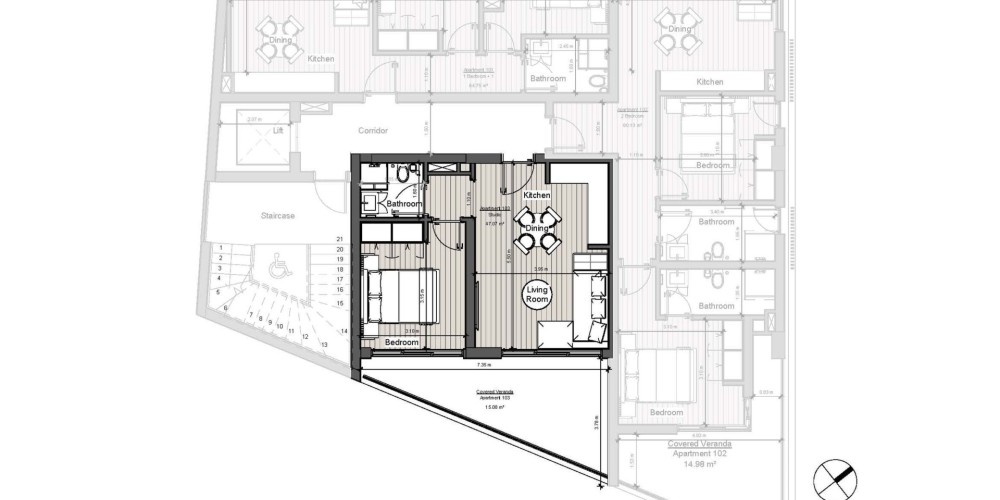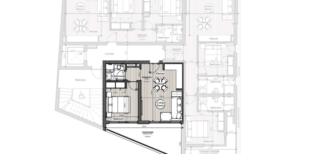 The project is a contemporary residential development defined by clarity of design, precision in detail and quality in execution. The project comprises a limited collection of well-proportioned one, two and three-bedroom apartments, along with penthouses.