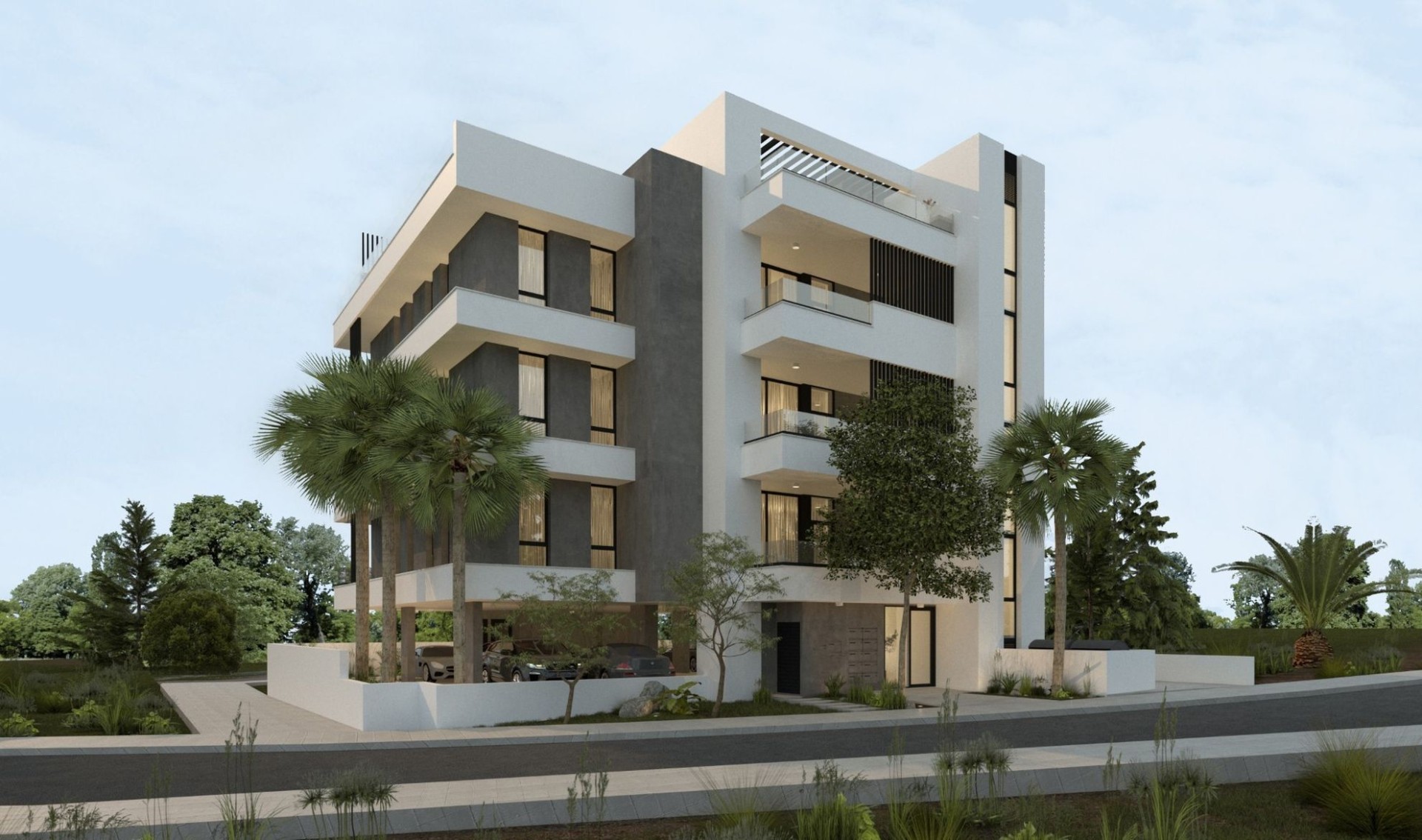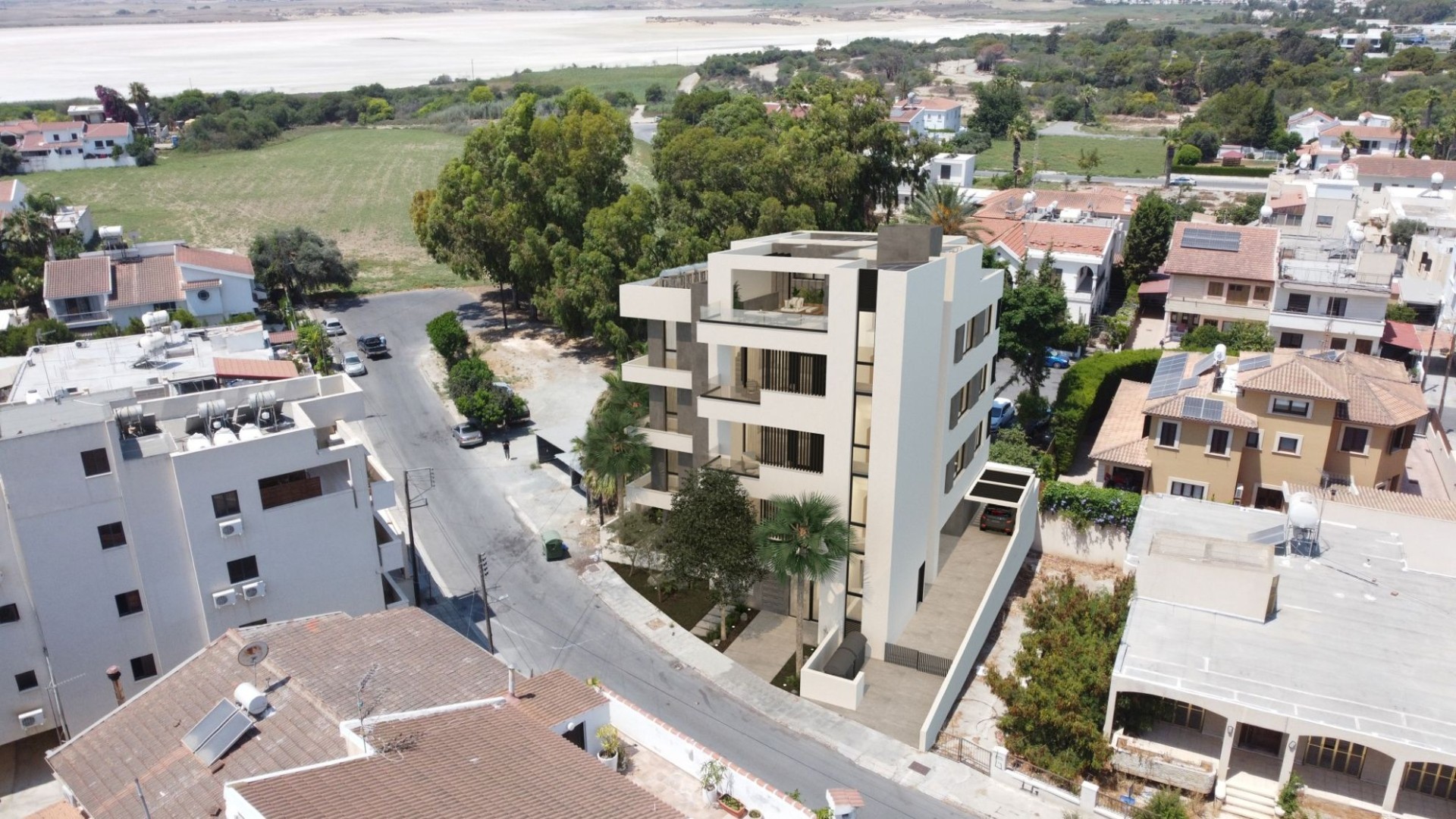 This contemporary residential apartment building in Larnaca combines modern design, comfort and everyday functionality in one elegant structure. Featuring clean architectural lines and a neutral color palette, the building offers aesthetic that blends seamlessly with the surrounding greenery.