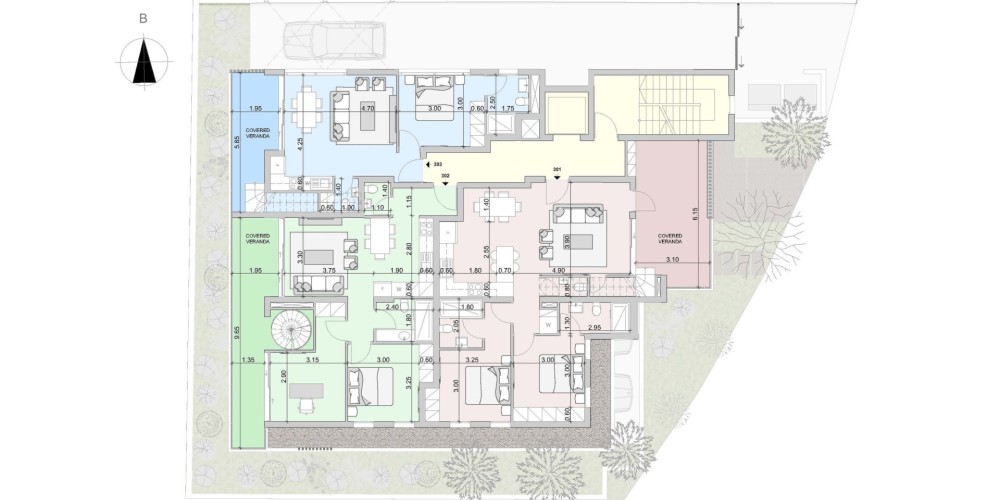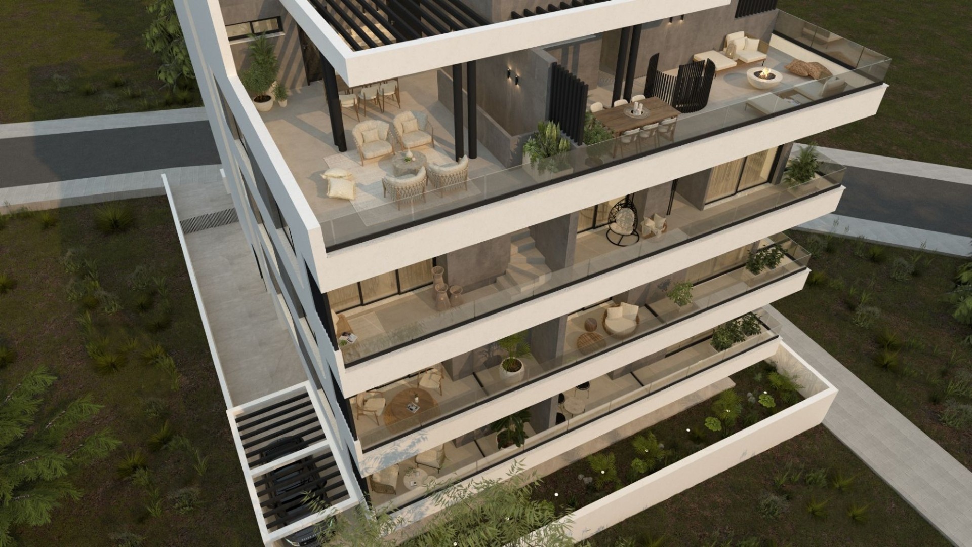 - Balanced urban living with nature and light.