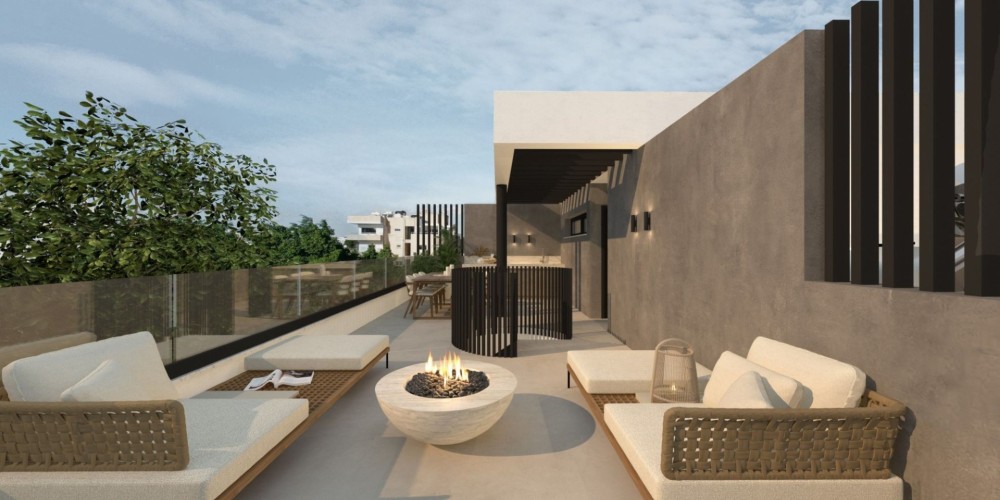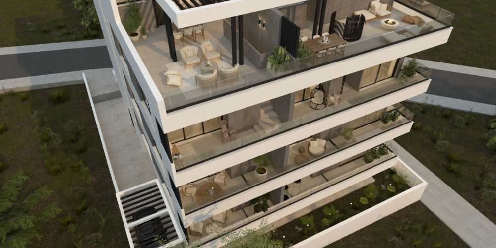 The development consists of four floors of spacious modern apartments, designed to maximize natural light and indoor-outdoor living. Large windows and wide balconies create bright, airy interiors with views of the neighborhood and nearby nature. Located just a 10-minute drive from Finikoudes promenade and the Blue Flag beach, these apartments are ideal for permanent residence, holiday living or property investment in Larnaca.