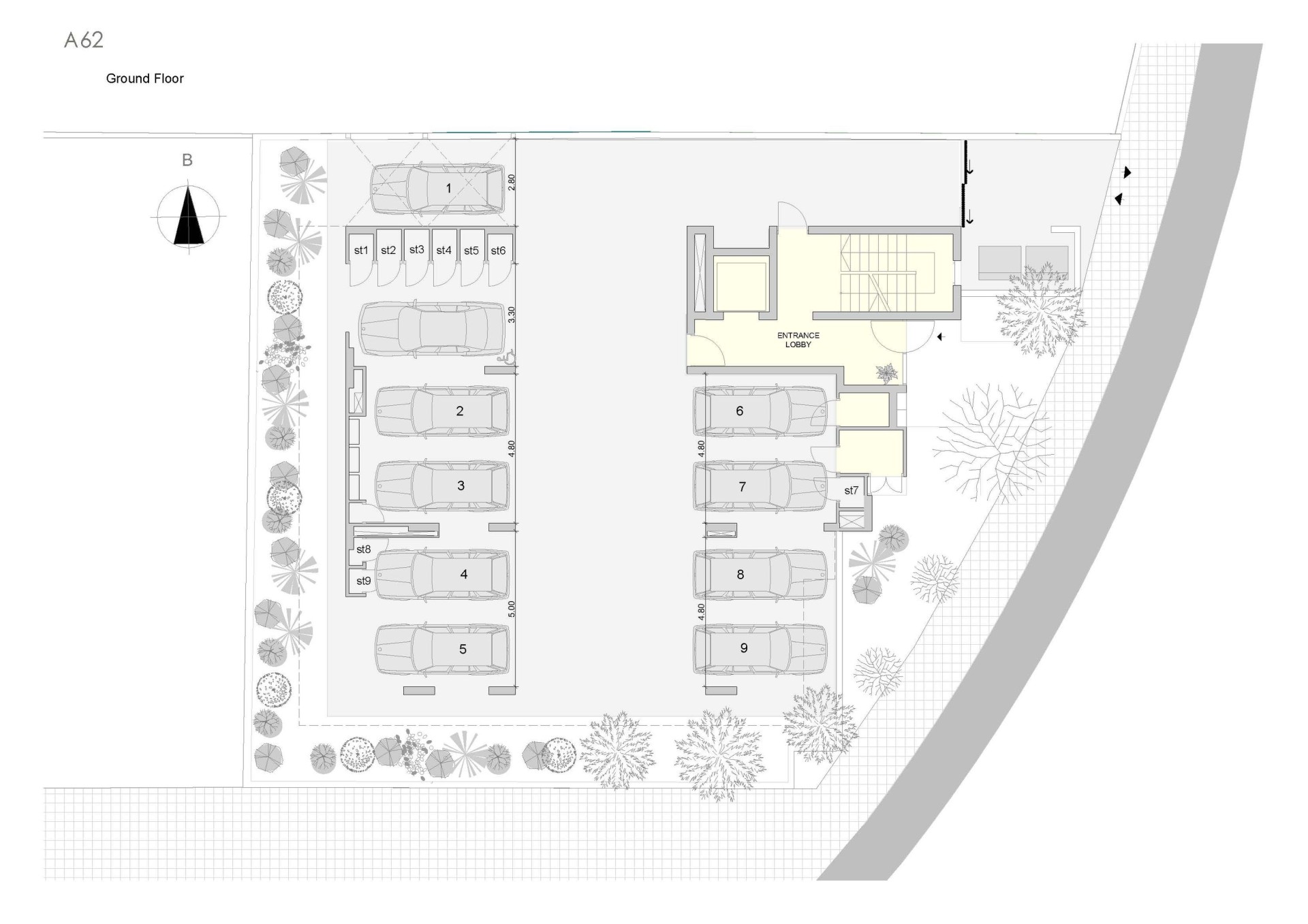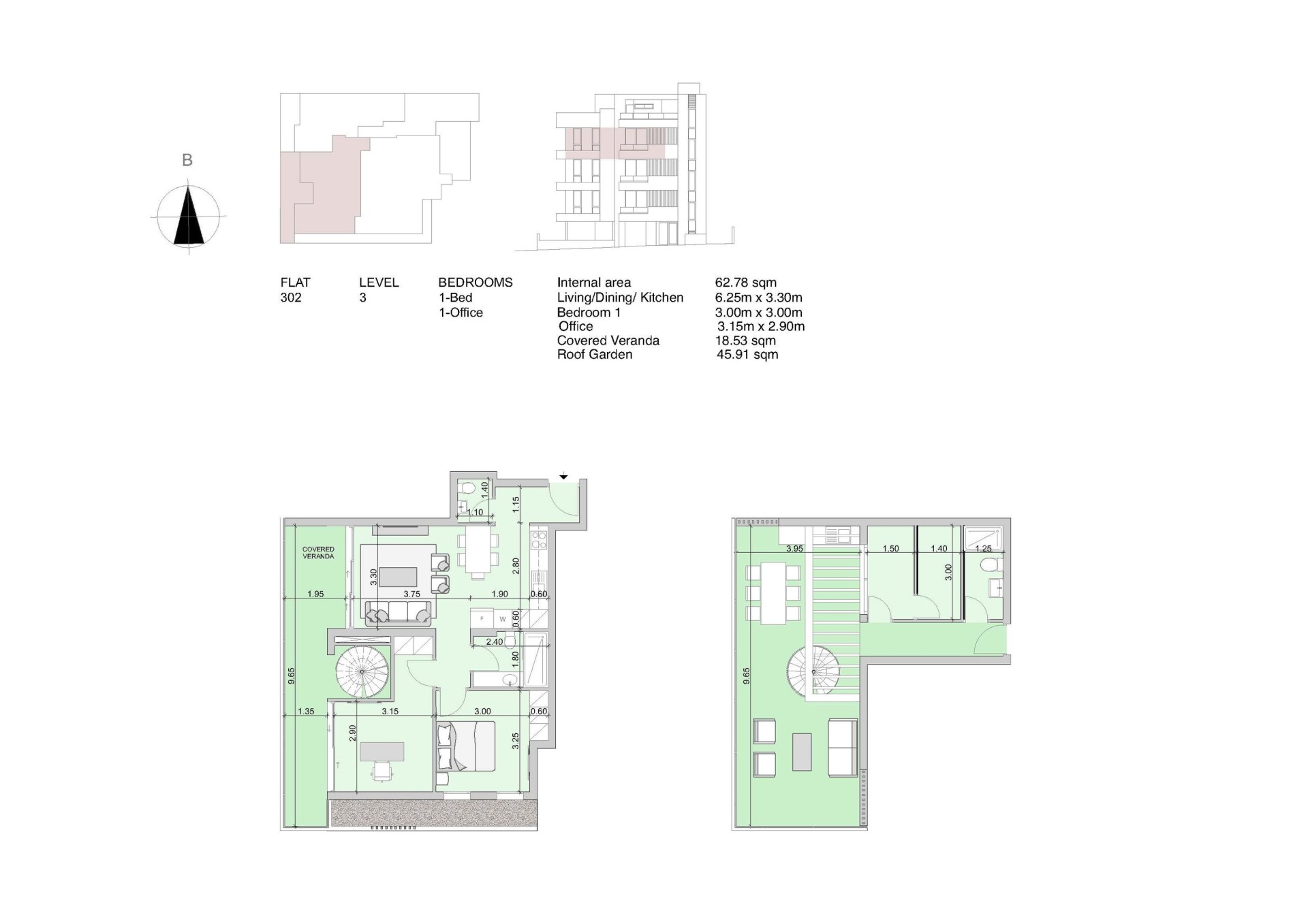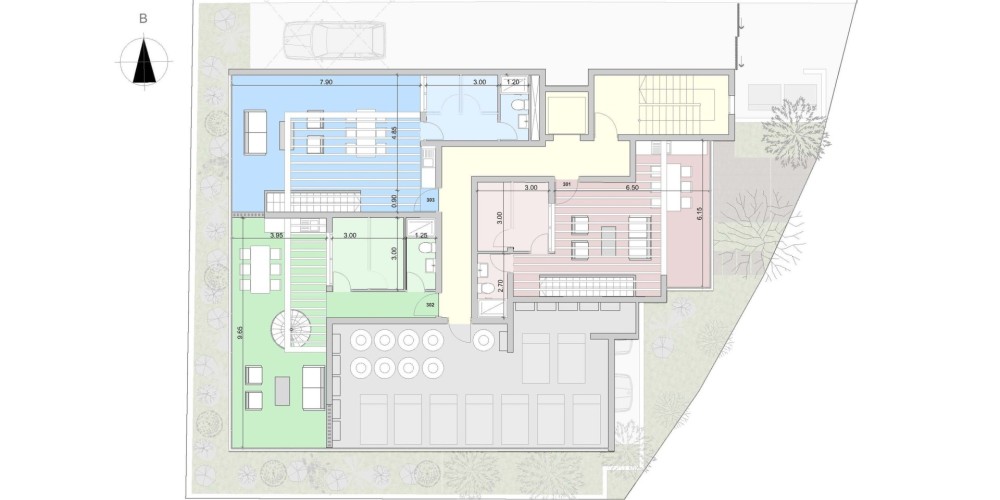 - Surrounded by two green areas