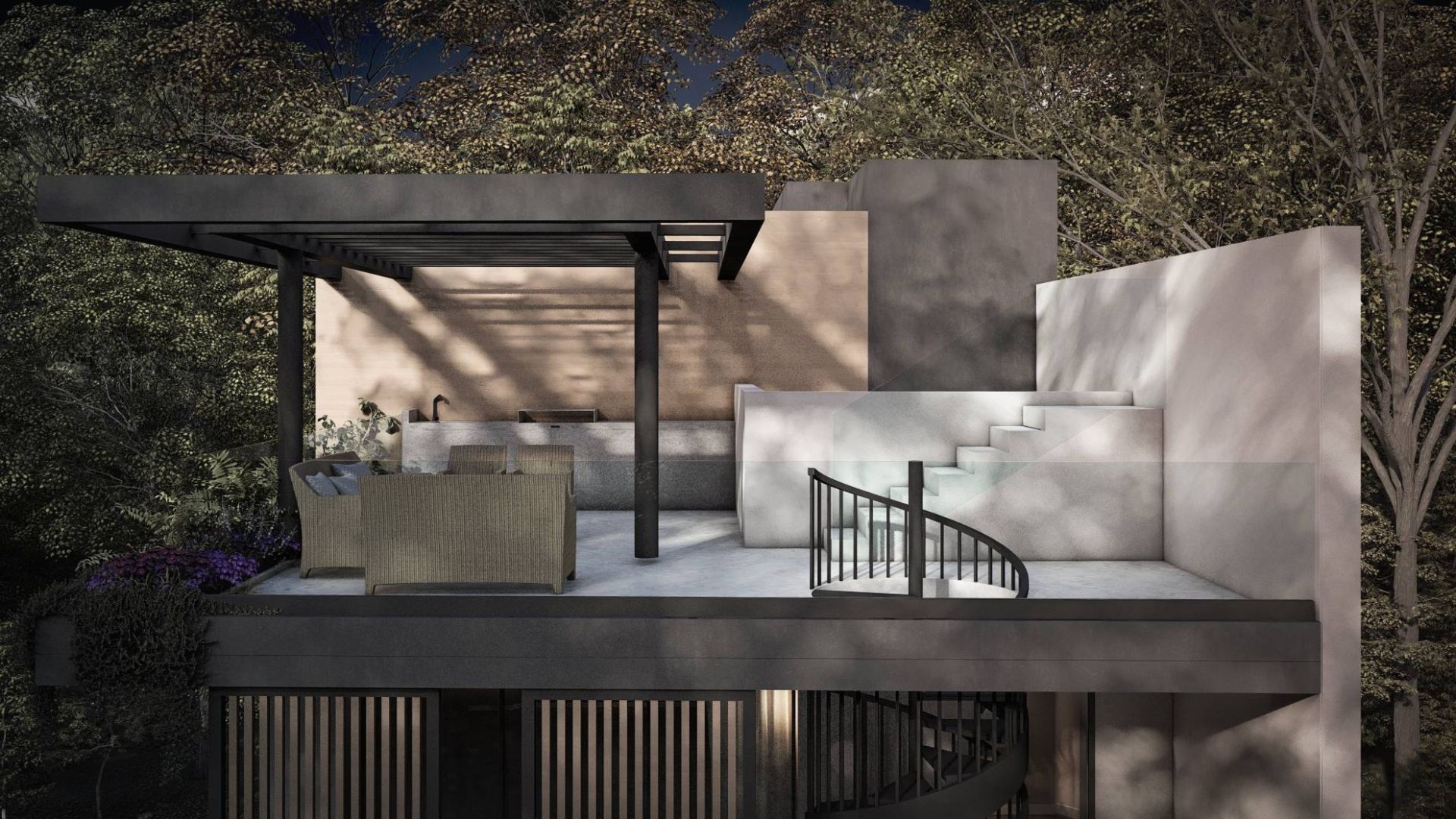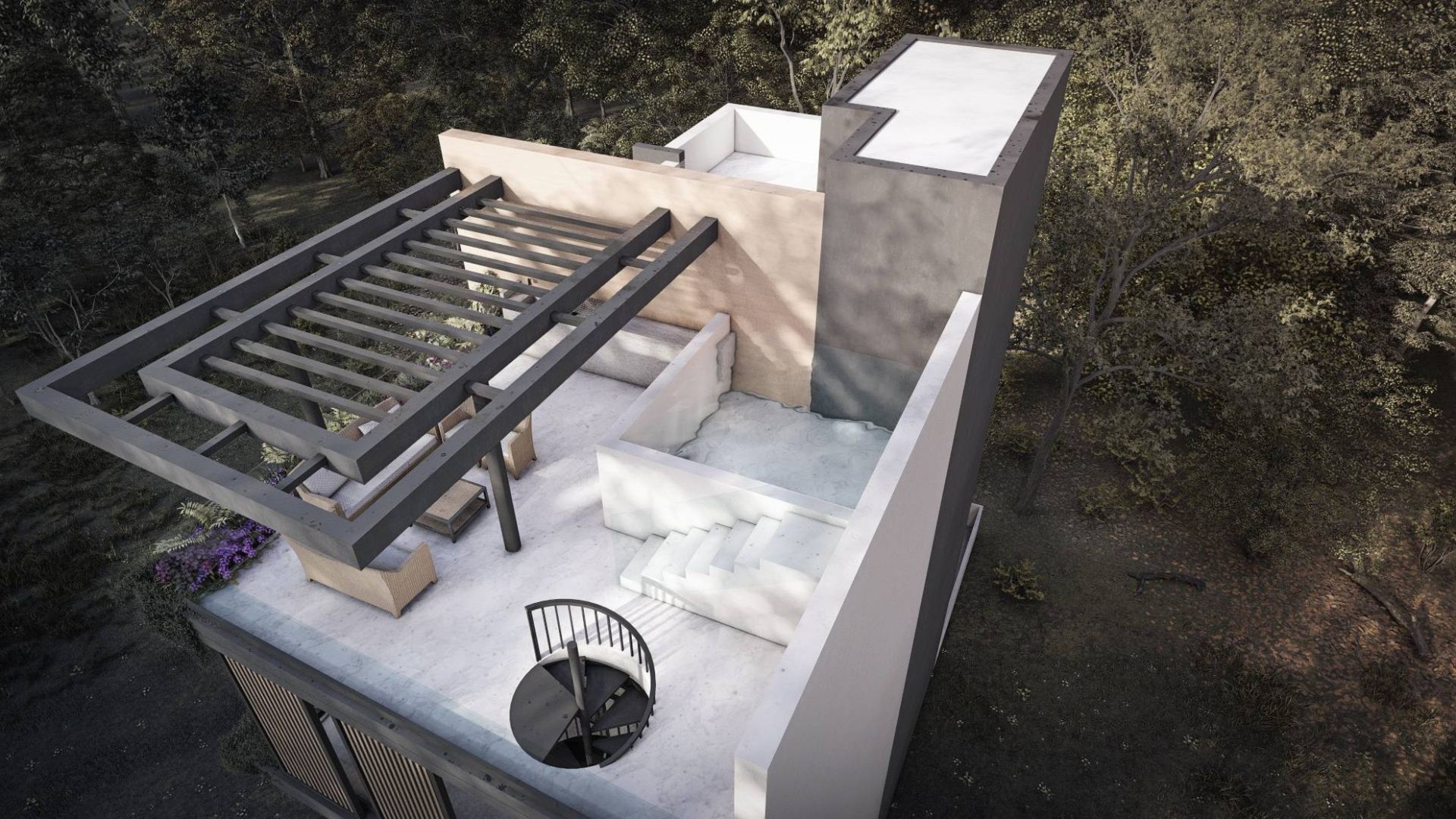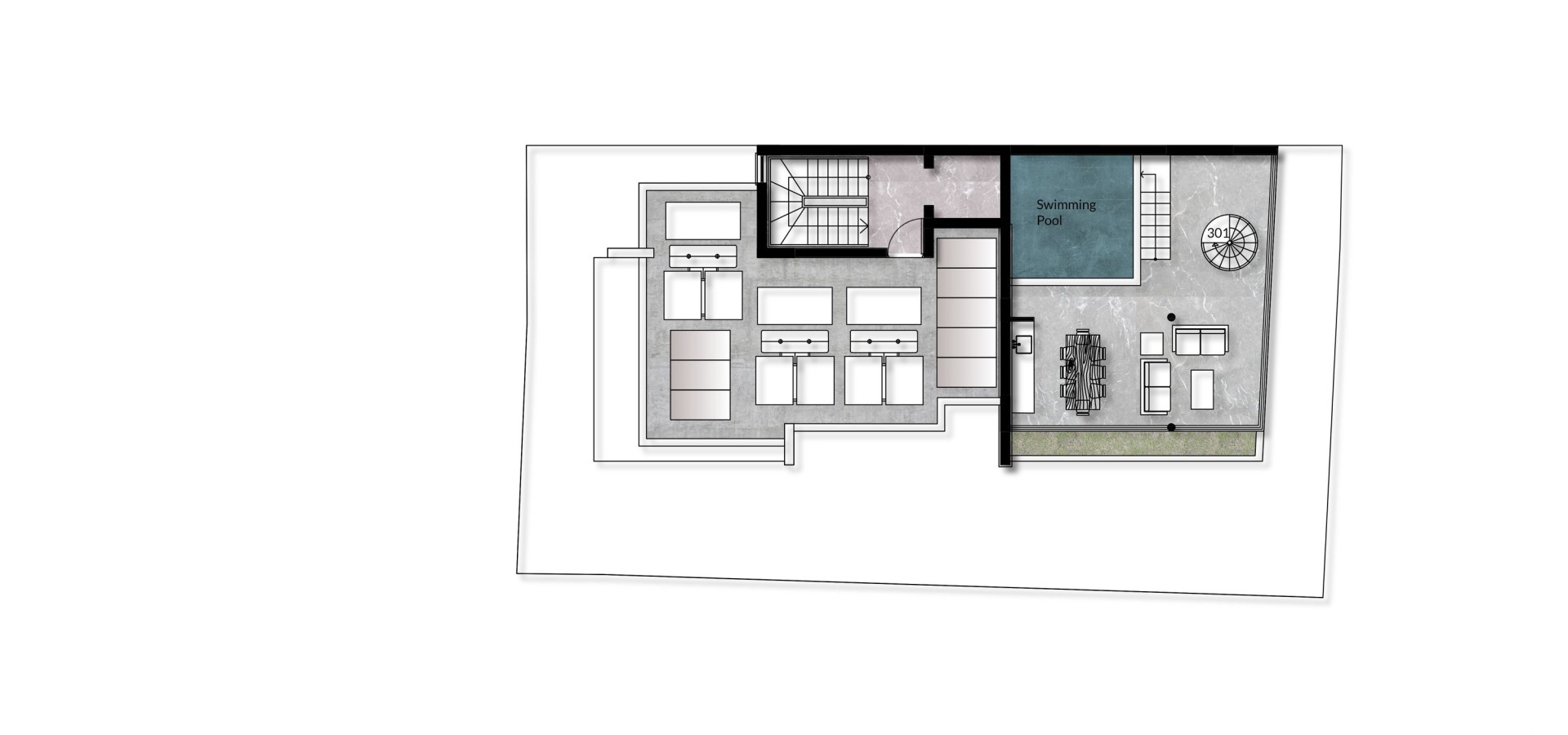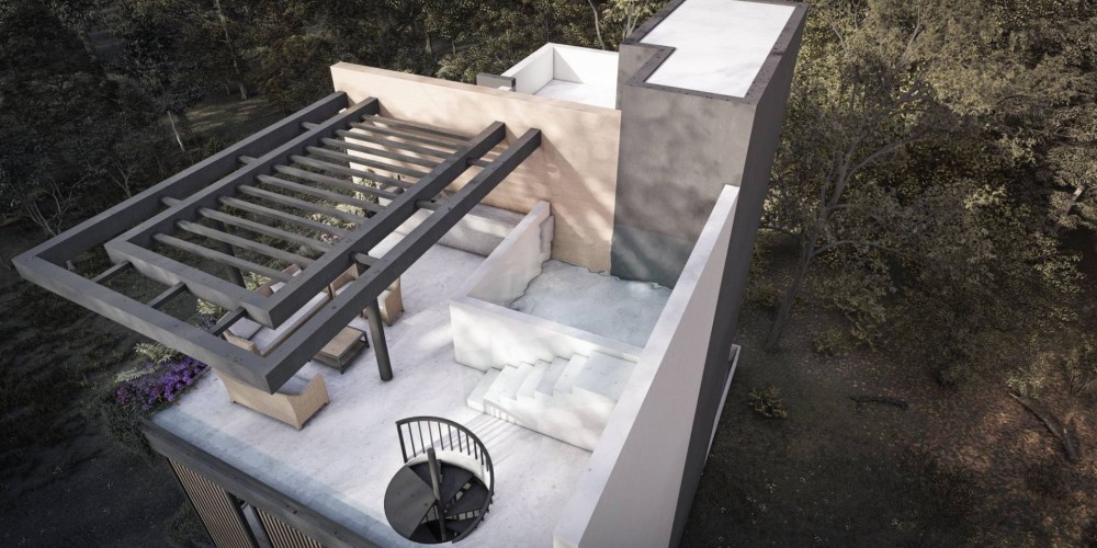 The third-floor apartment enjoys its own private roof garden and swimming pool.