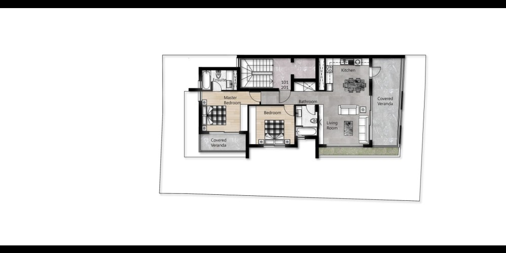The development consists of three beautifully designed two-bedroom apartments, with one apartment on each floor. With only three apartments in total, the building offers residents a more peaceful and refined living environment.
