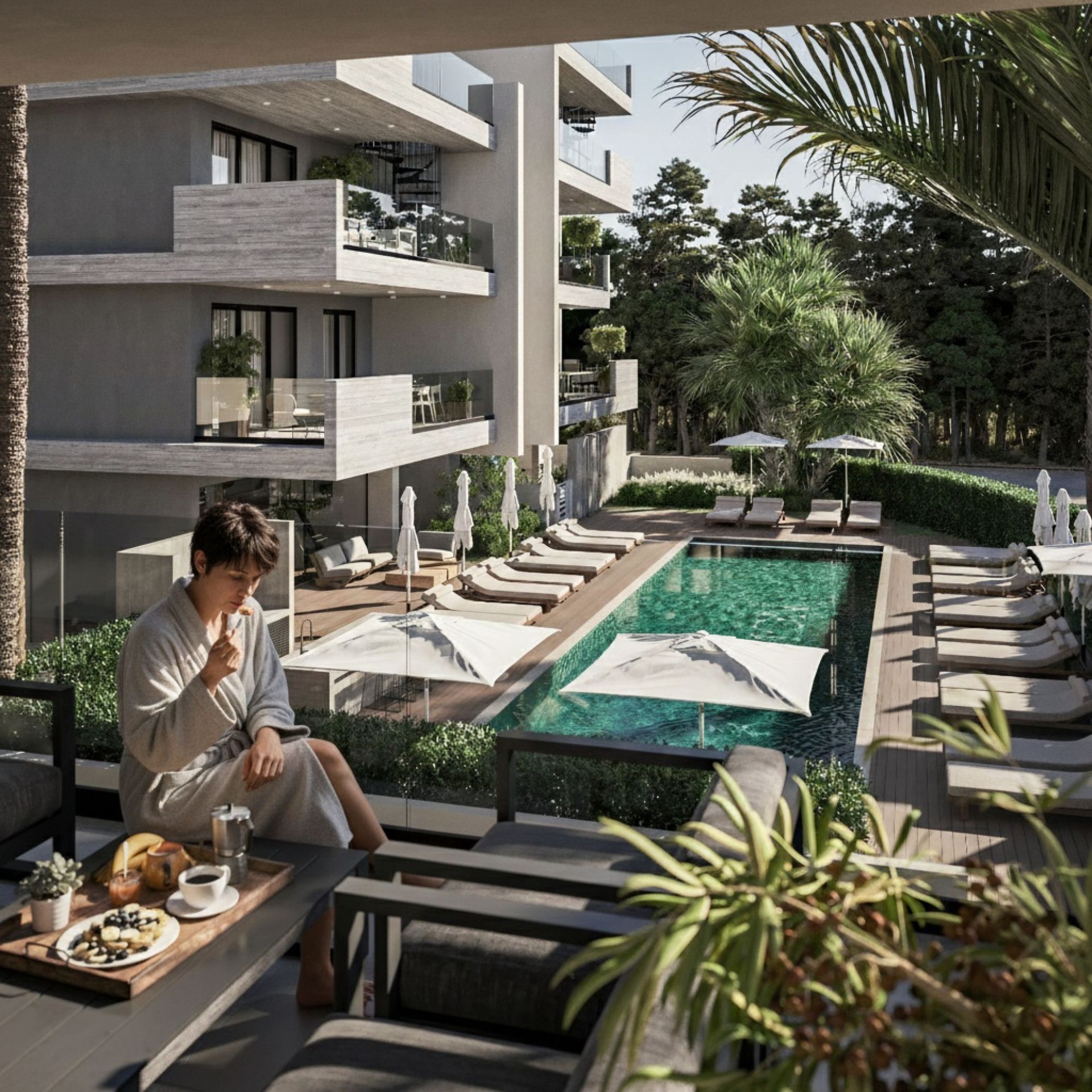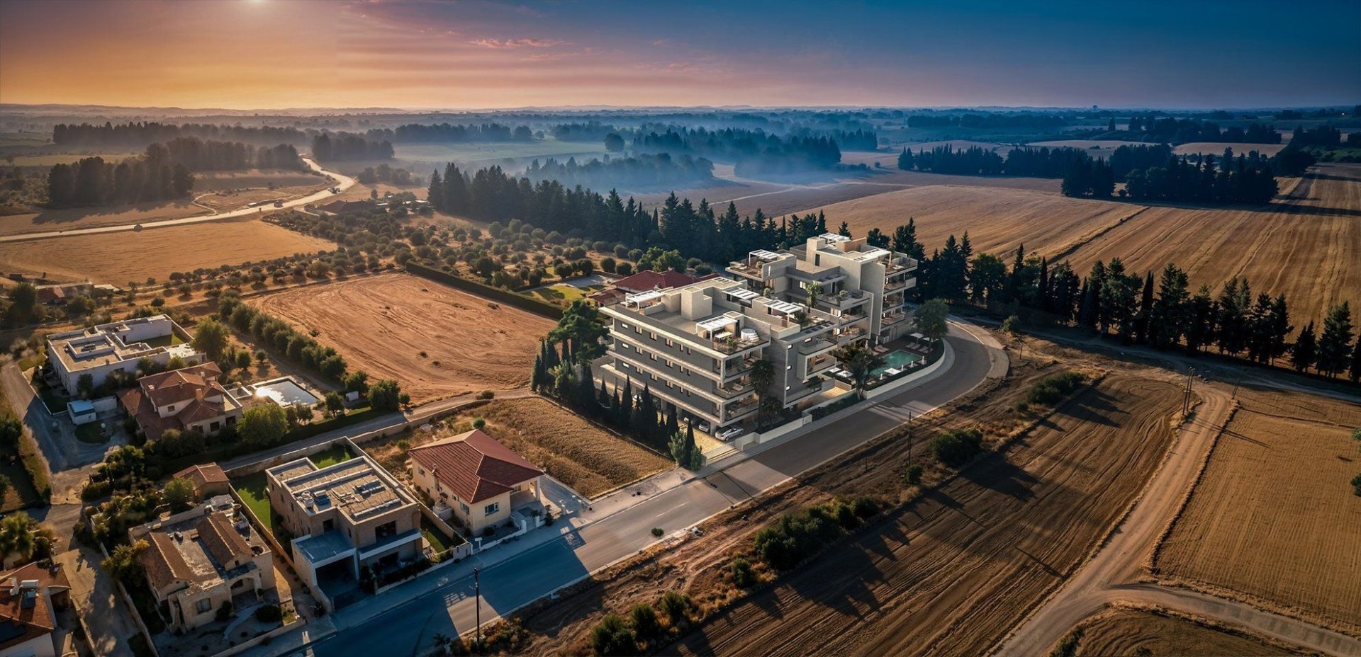 A contemporary residential complex designed for modern living. It combines elegant architecture with comfort and practicality, creating a serene retreat in the heart of Meneou, (Larnaca).