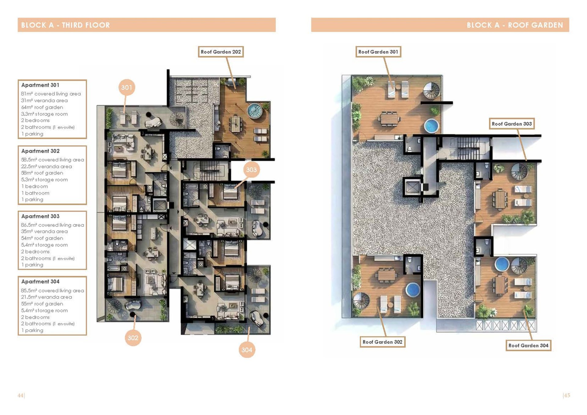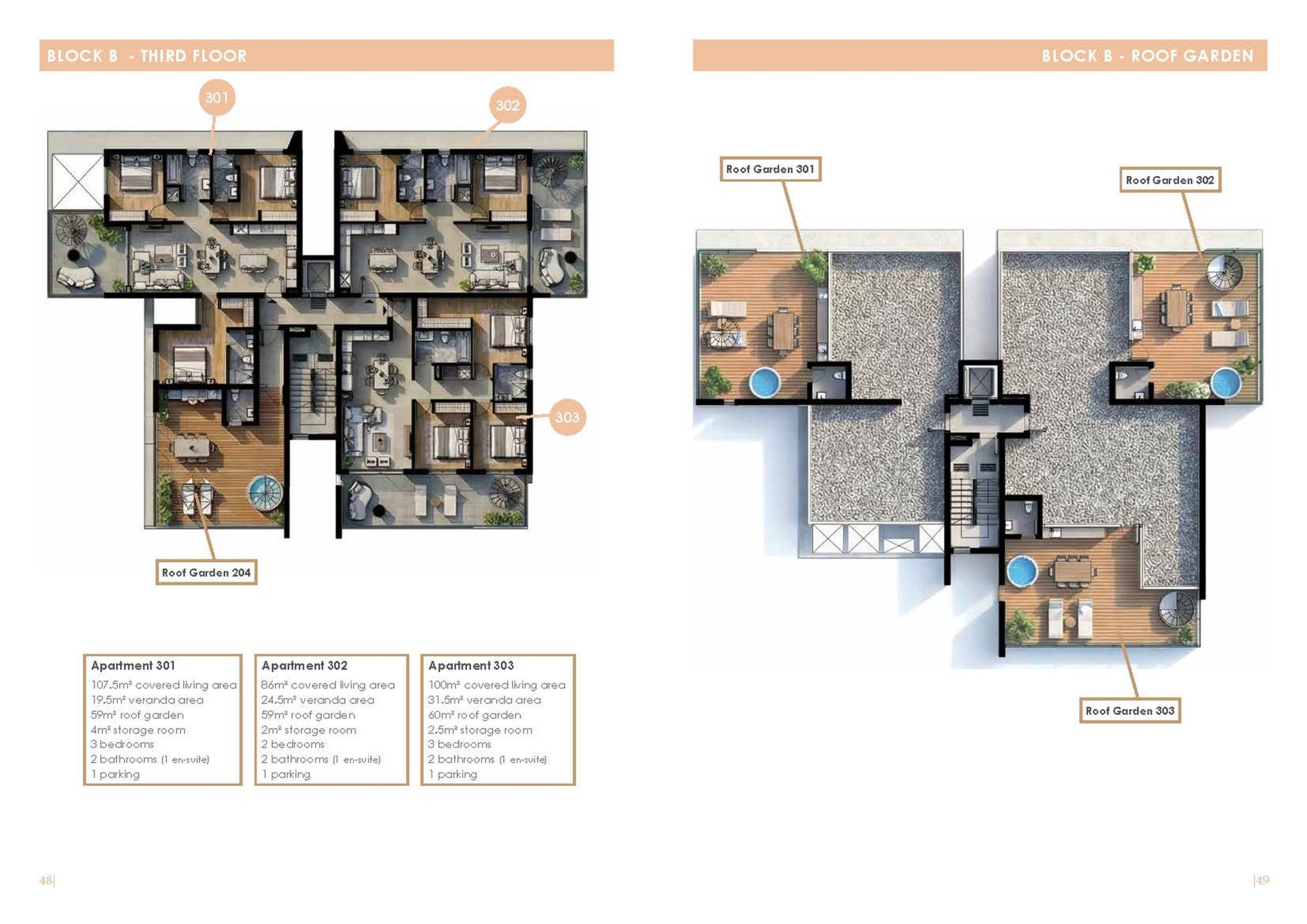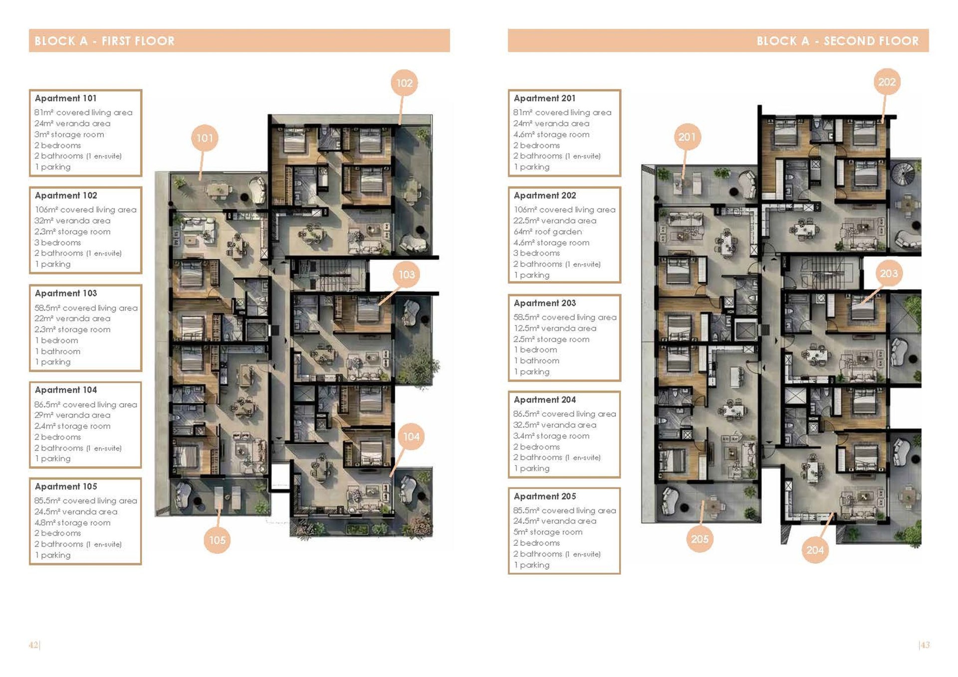 Each apartment will be provided with a parking space and a storage room.