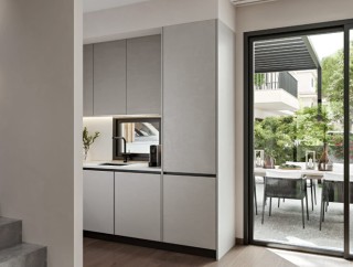 All the townhouses are delivered with complete interior finish. There is a kitchen furniture set installed in kitchens, wall cabinets in bedrooms and bathroom equipment in bathrooms. It remains for a customer to purchase furniture, blinds, lighting fixtures and household appliances.