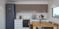 Оптимизированная по пространству планировка квартир создает ощущение простора; кухня и гостиная открытой планировки, а также есть балкон. Прихожая, ведущая в спальню и ванную комнату, обеспечивает больше уединения жильцам квартир.