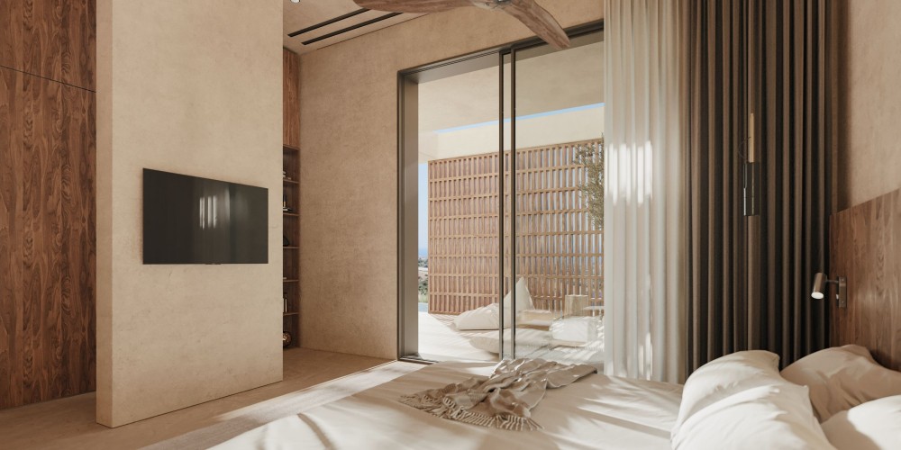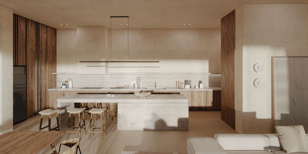 Внутри ощущение роскоши придают мраморными панели из травертина в ванных комнатах и в изголовиях в спальнях. Мрамор - это не только предмет роскоши, но и его прохладный оттенок, который помогает снизить температуру во время сна.