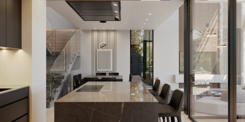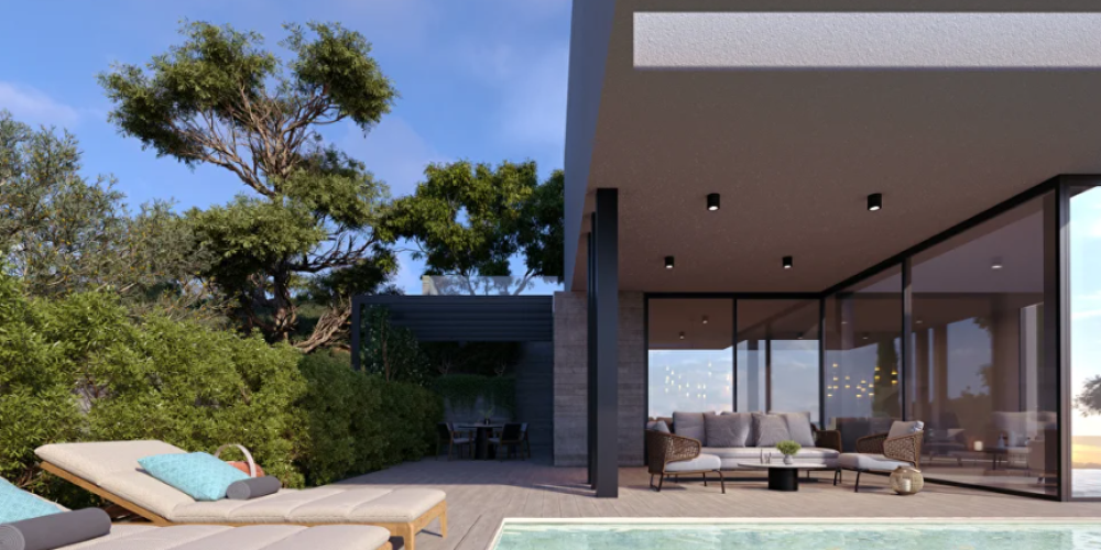 Жилой комплекс в Муттагиаке, Лимассол, состоит из современных вилл премиум-класса, расположенных на четырёх уровнях и органично встроенных в природный ландшафт горы. Из каждой комнаты открываются панорамные виды на море, а в каждой вилле предусмотрен каскадный инфинити-бассейн. Планировки включают просторные гостиные и обеденные зоны, до семи спален, кабинет, который можно переоборудовать в дополнительную спальню, а также сад на крыше с джакузи. Современные технологии, такие как система «умный дом», частный лифт и тёплые полы, обеспечивают высокий уровень комфорта и функциональности.