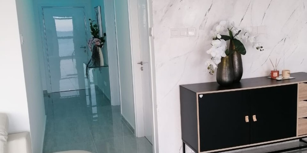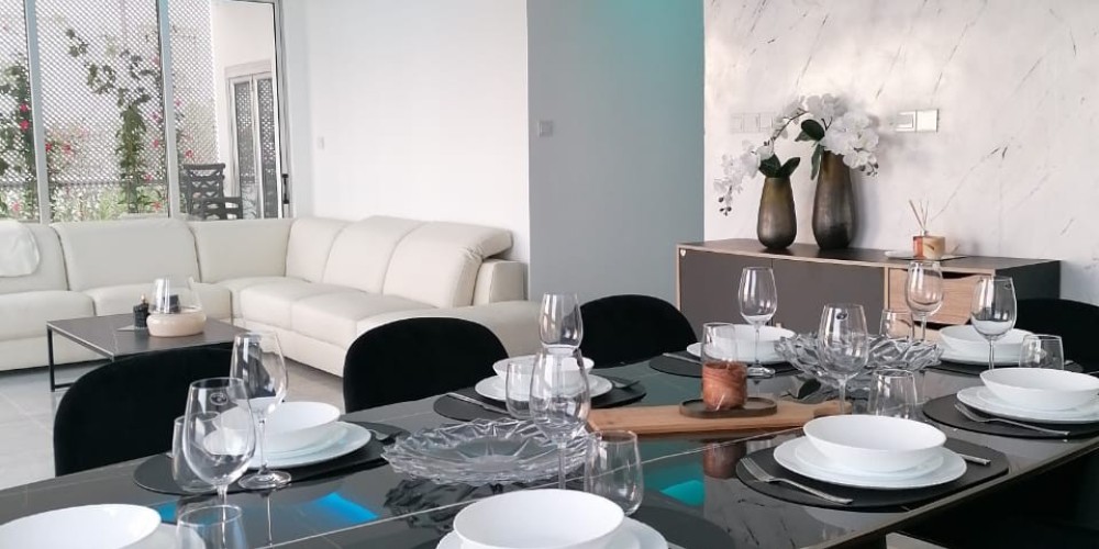 Полностью обновленная 3-комнатная квартира всего в нескольких шагах от пляжа. Площадь 110 кв.м, расположена на 1 этаже, включает три ванных комнаты и обставлена новой стильной мебелью. Современный комфорт и морская атмосфера в отличном месте.
