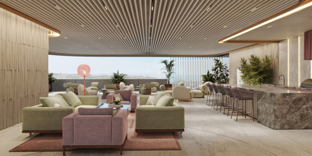 Одной из ключевых особенностей комплекса является терраса на крыше с зоной для барбекю — идеальное место для встреч на свежем воздухе с потрясающим видом на море с верхних этажей.