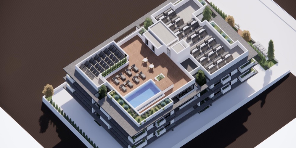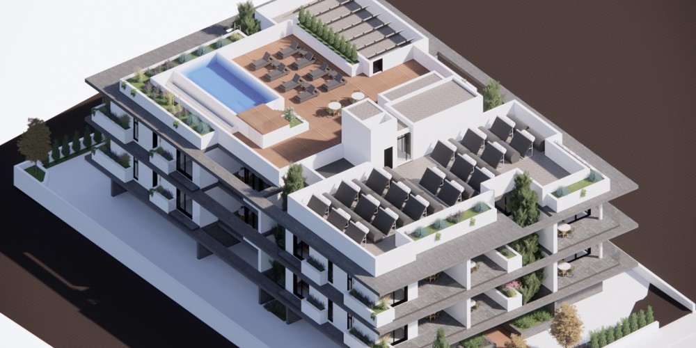 На крыше комплекса расположен сад с общим бассейном, откуда открываются панорамные виды на Средиземное море, создавая идеальное место для отдыха и расслабления. Этот проект сочетает стильный дизайн, отличное местоположение и спокойную атмосферу, предлагая идеальное убежище для тех, кто ищет изысканную жизнь у моря.