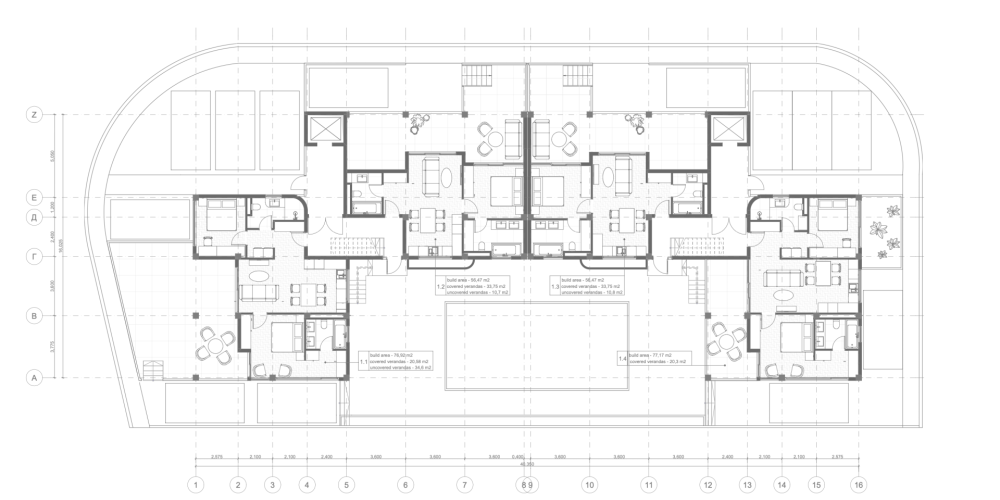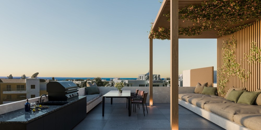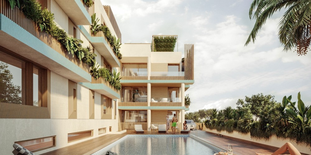 Комплекс включает апартаменты с 1 и 2 спальнями, а на третьем этаже открываются великолепные виды на море. В инфраструктуру входят общий бассейн, парковочные места и индивидуальные кладовые для каждой квартиры. Дизайн и планировка продуманы до мелочей, чтобы обеспечить жильцам комфорт, стиль и современные удобства.