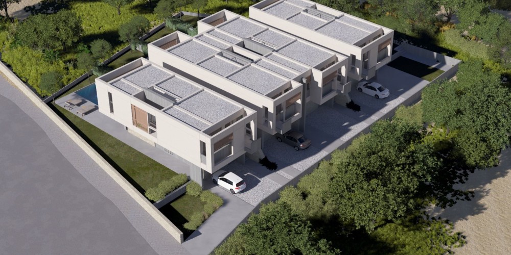 Этот проект отдельно стоящих вилл в деревне Choulou, Пафос, предлагает современный дизайн и функциональность. Среди ключевых особенностей — световые люки, высокие потолки, панорамные окна от пола до потолка, бесбалочные перекрытия, отделка деревом и камнем, плавающие лестницы и концепция внутреннего двора.