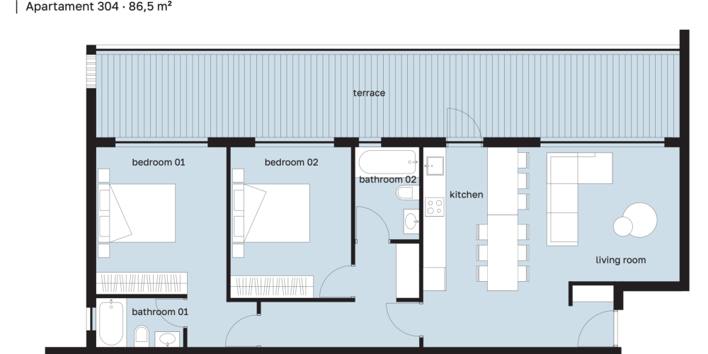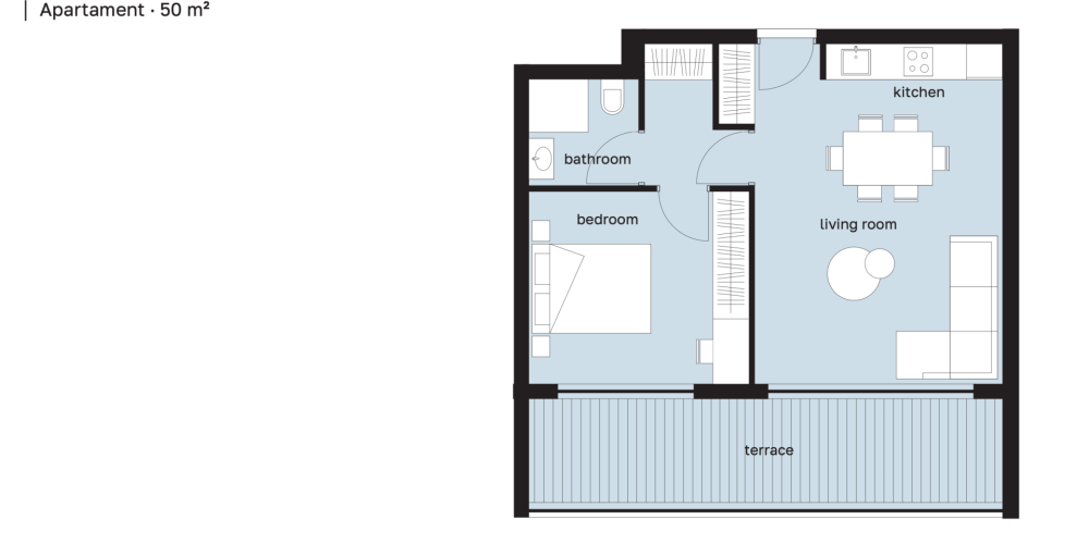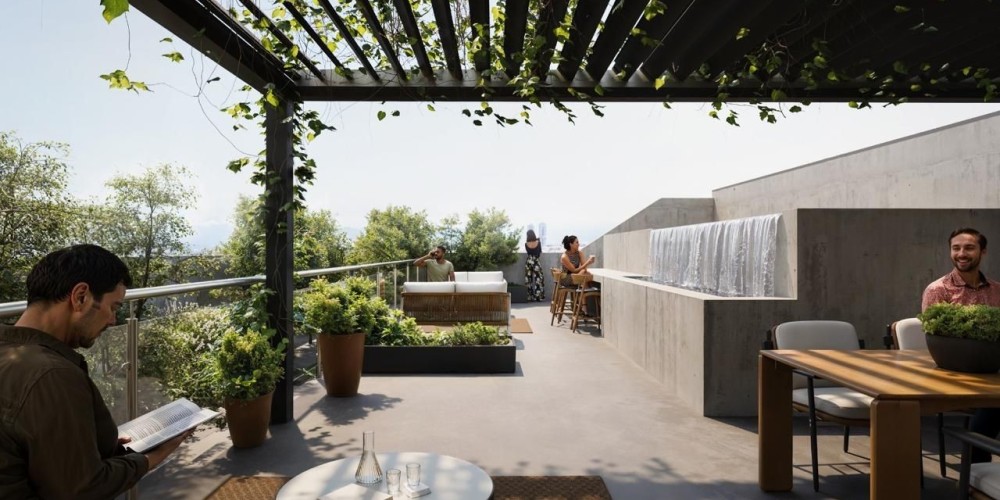 Для удобства жильцов предусмотрены разнообразные зоны отдыха и инфраструктура: бассейн, спортзал, сауна, сад на крыше, а также общие пространства для работы и досуга, включая коворкинг и зону барбекю. Дополнительным преимуществом является то, что это единственное здание в квартале выше двух этажей, что гарантирует приватность и отсутствие вида "окна в окна".