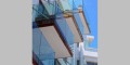 Здание имеет стильный оригинальный дизайн. На территории комплекса есть большой бассейн и ландшафтный сад.