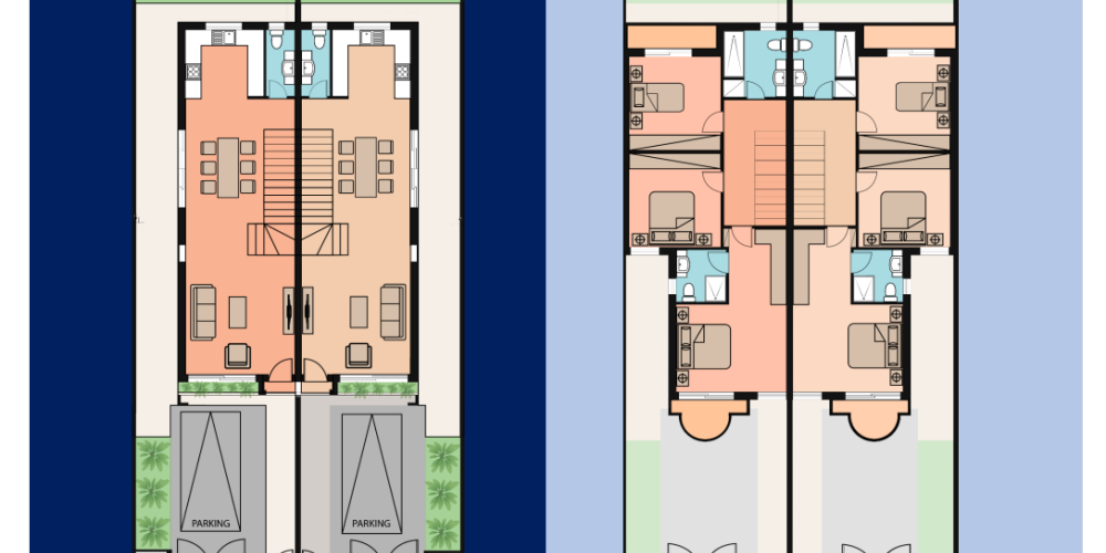 Дома выполнены в современном стиле с открытой планировкой, индивидуально изготовленными кухнями, встроенными шкафами, большими окнами с двойным остеклением и продуманными интерьерами, обеспечивающими комфортное проживание. Идеальное сочетание стиля, функциональности и удобства ждет вас в этом динамичном сообществе.