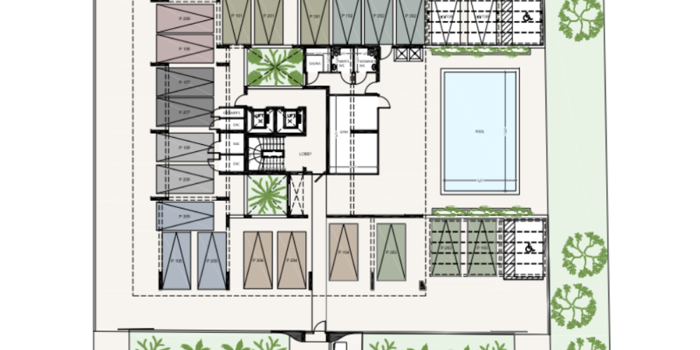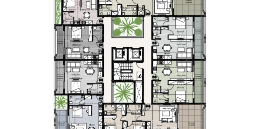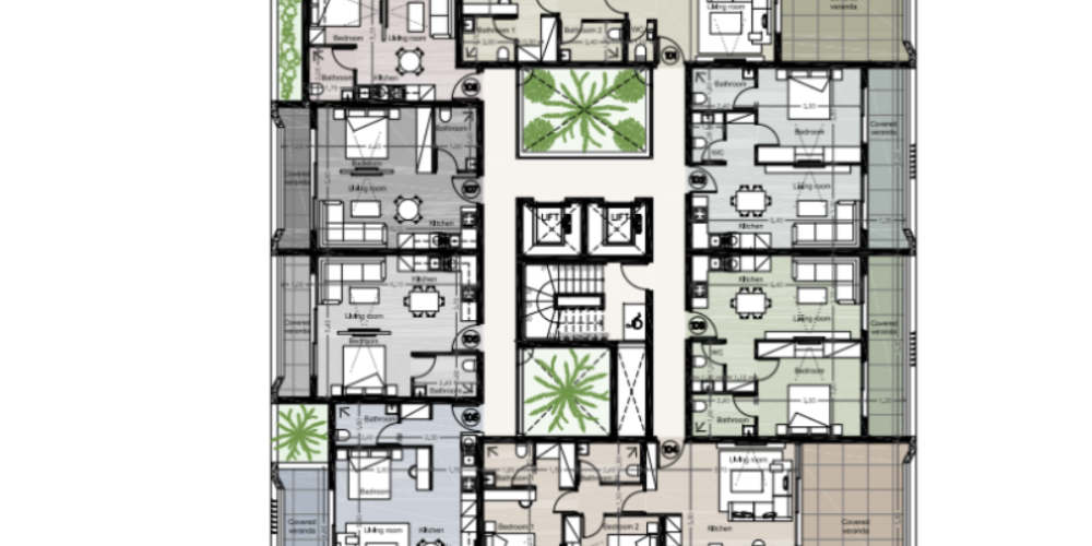 Жилой комплекс в Ларнаке состоит из трех этажей и включает 20 квартир: студии, одно- и двухспальные апартаменты. Для каждой квартире предусмотрена кладовая. Пентхаусы имеют собственные сады на крыше.