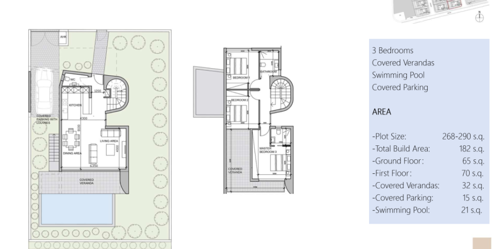 Жилой комплекс представляет собой полностью меблированные и готовые к заселению виллы, спроектированные для комфортного проживания. В каждой из них предусмотрена фотогальваническая система для энергоэффективности, теплый пол и современная VRV-система кондиционирования. В отделке интерьеров использован натуральный мрамор, привезенный из Египта. Планировка вилл включает три или четыре спальни и современные удобства.