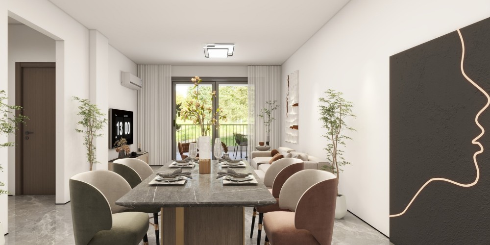 Жилой комплекс предлагает современные апартаменты с функциональной планировкой в удобной локации. В наличии варианты с двумя и тремя спальнями, включающие просторные жилые зоны открытого типа, полностью оборудованные кухни и современные ванные комнаты. Здание спроектировано с учетом максимального использования пространства и естественного освещения, а также оформлено зелеными элементами.
