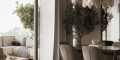 Апартаменты спроектированы с учетом максимального использования пространства и естественного освещения. Полноразмерные стеклянные двери выходят на балконы с видом на кроны деревьев, а кухни и обеденные зоны открытого типа создают комфортное сочетание внутреннего и наружного пространства.