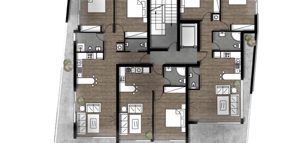 - Квартиры с 1 и 2 спальнями, а также пентхаус с садом на крыше
