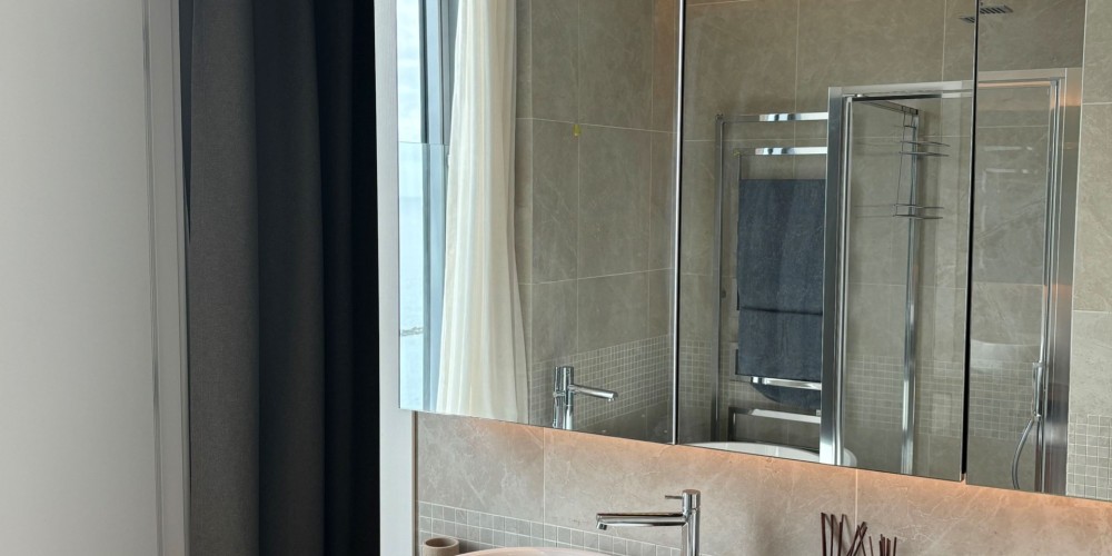 Каждая квартира оснащена высококачественной отделкой и современными материалами, включая премиальные плиточные покрытия, сантехнику и разнообразные варианты кухонных дизайнов. Просторные стеклянные поверхности и большие балконы стирают грань между внутренним и внешним пространством, наполняя помещения естественным светом и открывая захватывающие виды на море.