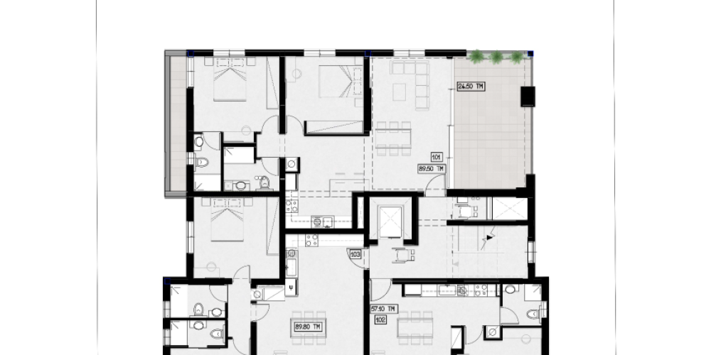 Жилой комплекс расположен на возвышенности в районе Плати, Агланция, и включает три жилых этажа, а также цокольный уровень с крытой парковкой и выделенными кладовыми для всех жителей. В здании восемь квартир с просторными планировками, большими балконами и обилием естественного света. В проекте представлены квартиры с 1, 2 и 3 спальнями, каждая из которых оснащена удобными жилыми зонами, крытыми верандами и фотоэлектрическими панелями.