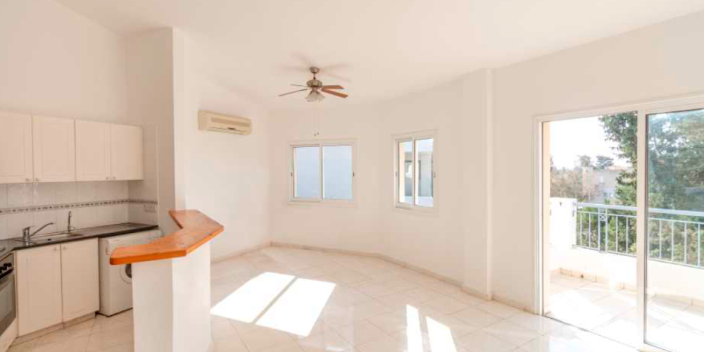 Квартира находится на втором этаже и включает в себя практичную планировку: две спальни, одну ванную комнату, кухню, столовую и гостиную, а также открытую веранду. Архитектурный стиль содержит элементы, характерные для традиционной кипрской застройки, а выбор материалов ориентирован на функциональность и долговечность. Среди особенностей — керамическая плитка в кухне и ванной, встроенные шкафы, полы из терраццо и парковочное место.