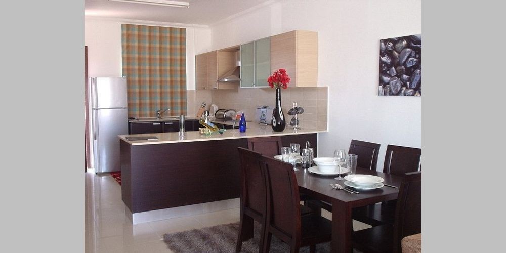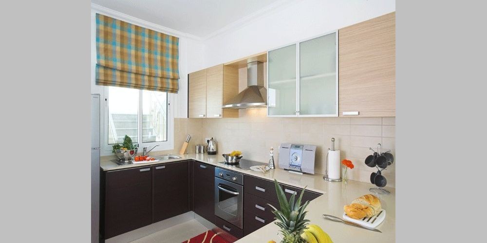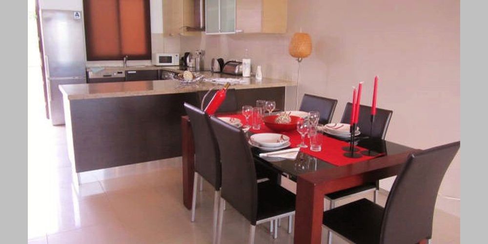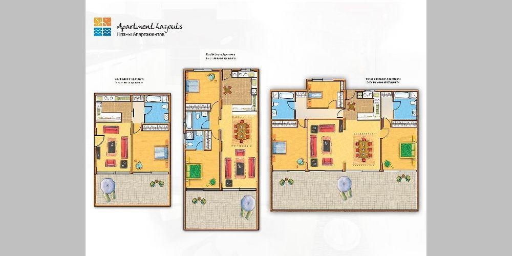 Комплекс недвижимости состоит из небольших трехэтажных блоков, в которых находятся одно-, дву- и трехспальные апартаменты.