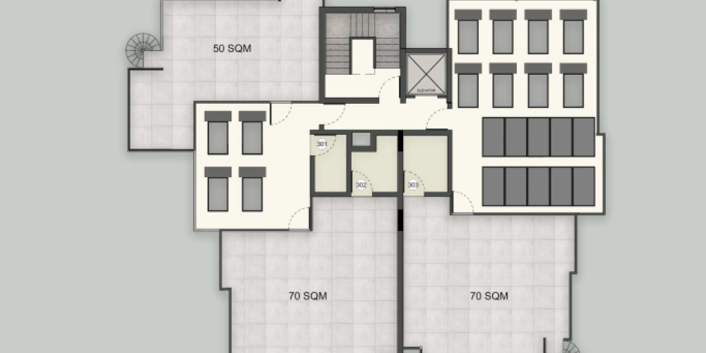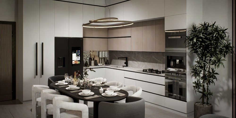 Архитектурное решение акцентирует внимание на чётких формах и рациональном использовании пространства. Каждая квартира располагает собственным открытым пространством — верандой или террасой на крыше. Территория комплекса огорожена, оборудована системой видеонаблюдения, предусмотрены кладовые помещения для жильцов и озеленённые общие зоны.