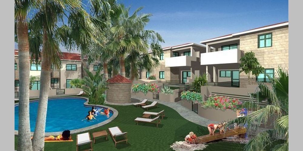 Таунхаусы и апартаменты на первом этаже имеют свои собственные садики. На территории комплекса есть бассейн (с подогревом) и ландшафтный сад.