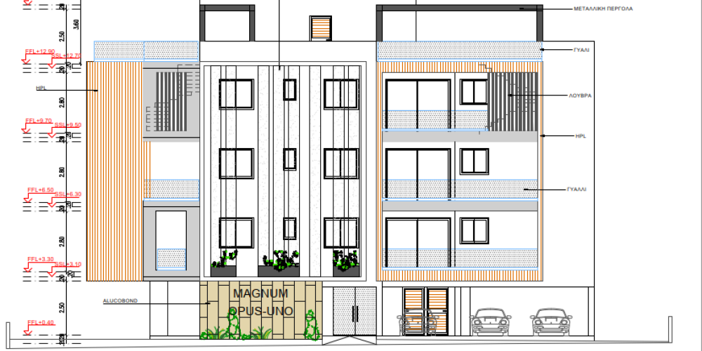 Расположенный в жилом районе Арадиппу на окраине Ларнаки, этот трехэтажный жилой комплекс включает в себя 12 квартир. В проекте предусмотрены десять апартаментов с двумя спальнями и две квартиры с одной спальней. Четыре пентхауса на верхнем этаже дополнены приватными садами на крыше.