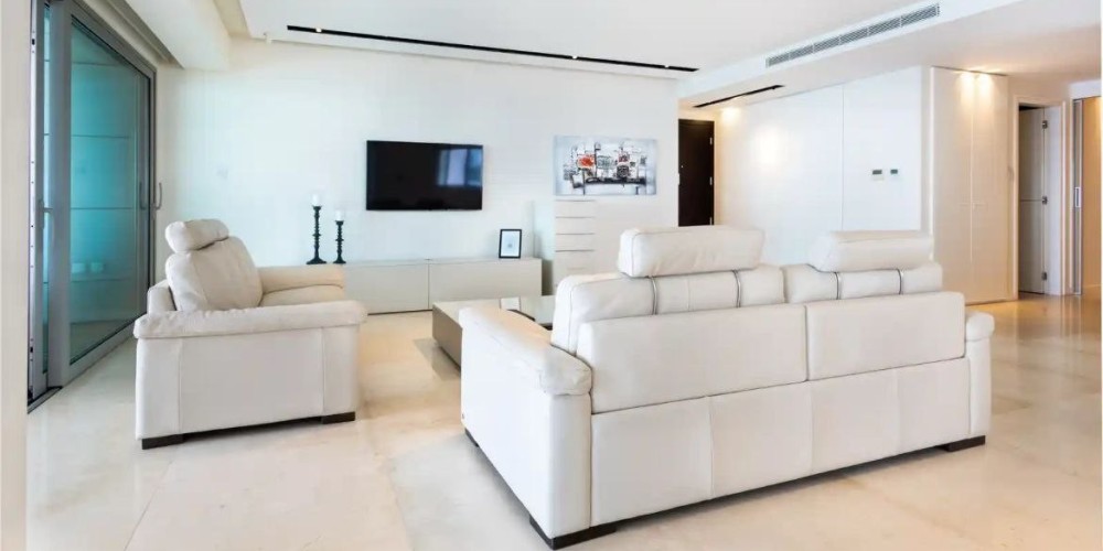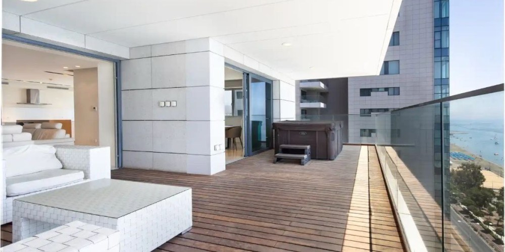 Апартаменты с тремя спальнями расположены в жилом комплексе на первой линии в Лимассоле и отличаются просторной планировкой с видом на море. Изначально квартира состояла из двух отдельных единиц, которые были объединены в процессе строительства, благодаря чему удалось создать увеличенное жилое пространство и просторные спальни.