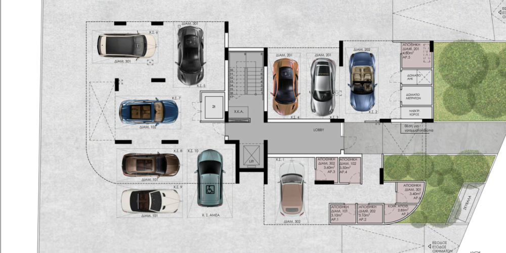 - Два парковочных места для квартир с тремя спальнями