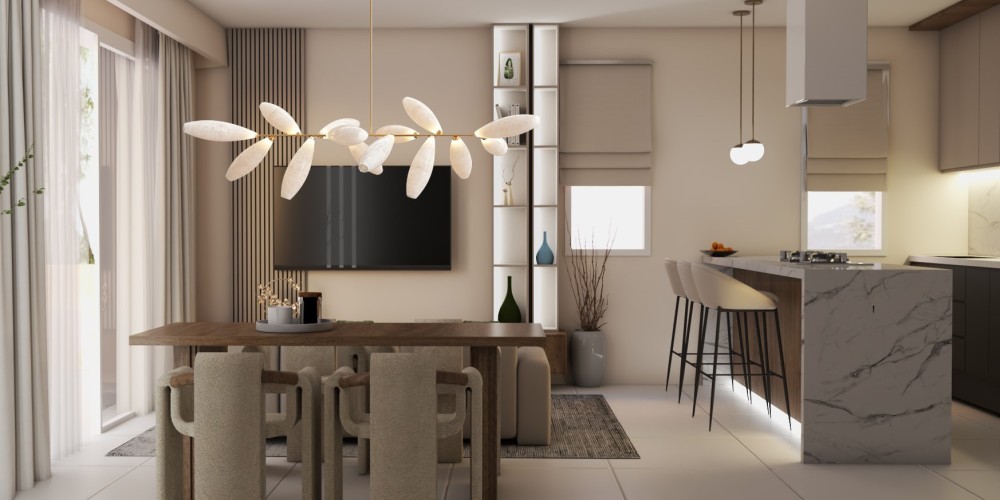 - Открытая планировка кухни, гостиной и столовой