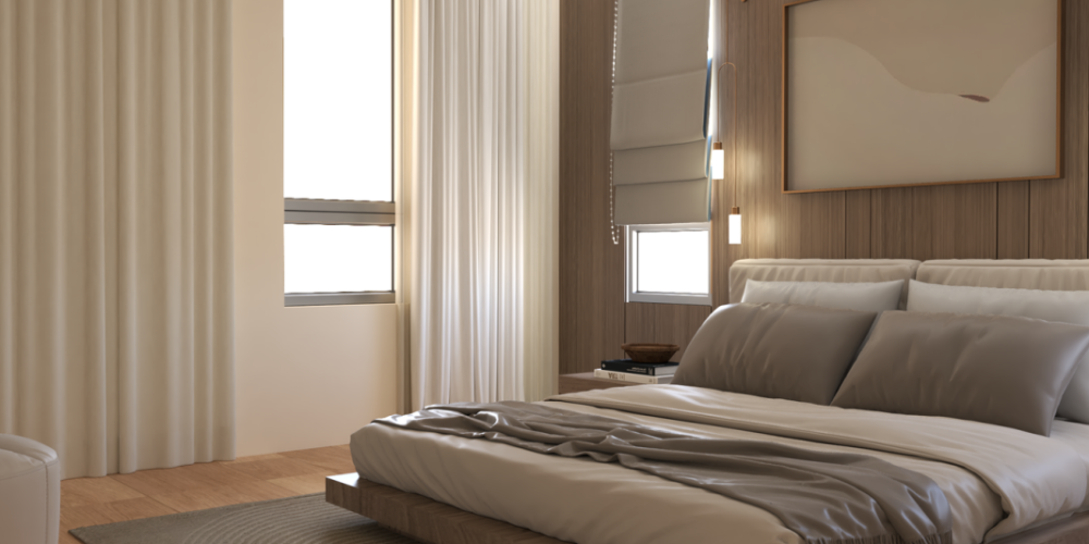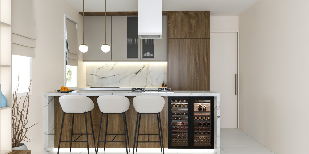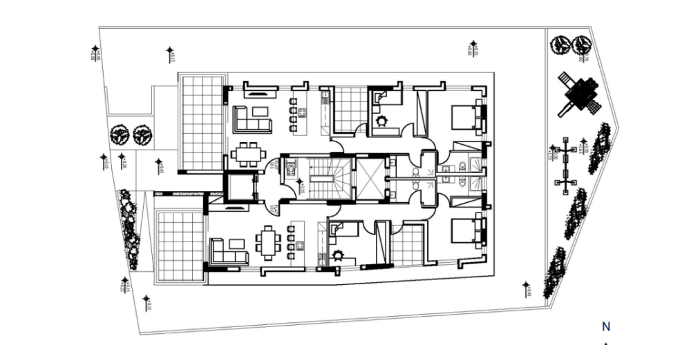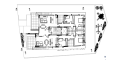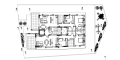 Проект включает восемь жилых единиц: двухкомнатные квартиры и пентхаусы. Все помещения спроектированы по принципу открытой планировки, объединяя зоны кухни, гостиной и столовой. Просторные веранды расширяют жилое пространство.