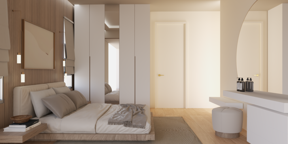 Каждая квартира оснащена индивидуальным парковочным местом и кладовой комнатой на первом этаже. В стандартную комплектацию входят встроенные шкафы, оборудованные кухни, керамическая плитка на полу и окна с двойным остеклением.