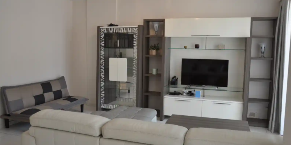 Апартаменты полностью меблированы и включают два парковочных места, что отражено в титуле собственности. Также в квартире установлены система кондиционирования воздуха во всех комнатах, камин и качественная внутренняя отделка. Здание построено в 2018 году и имеет сертификат энергоэффективности класса B+.