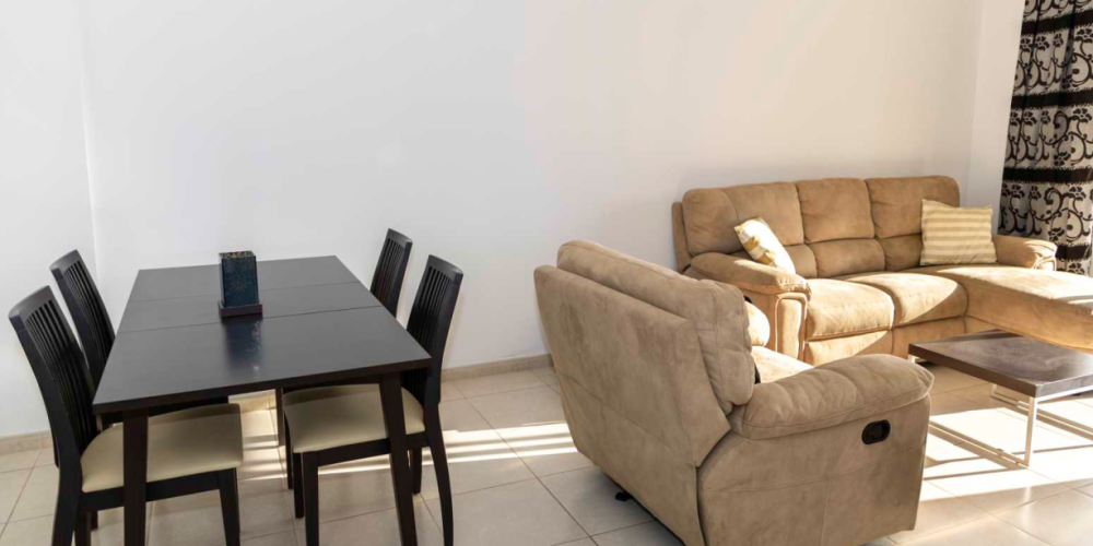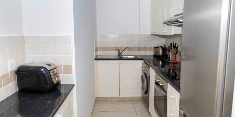 В квартире предусмотрена объединённая гостиная и столовая зона открытой планировки, кухня, одна спальня и ванная комната. Также имеется крытая веранда и закреплённое парковочное место. Жители комплекса могут пользоваться общей инфраструктурой, включая просторные бассейны. На территории также находятся ресторан, бар и мини-маркет. Во всех помещениях установлены кондиционеры.