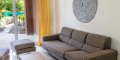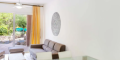 В планировке квартиры предусмотрены гостиная, обеденная зона, кухня, две спальни (одна с собственной ванной комнатой) и еще одна ванная комната. Покрытая веранда предлагает дополнительное пространство на свежем воздухе. Квартира также имеет собственный ландшафтный сад и закрепленное парковочное место.